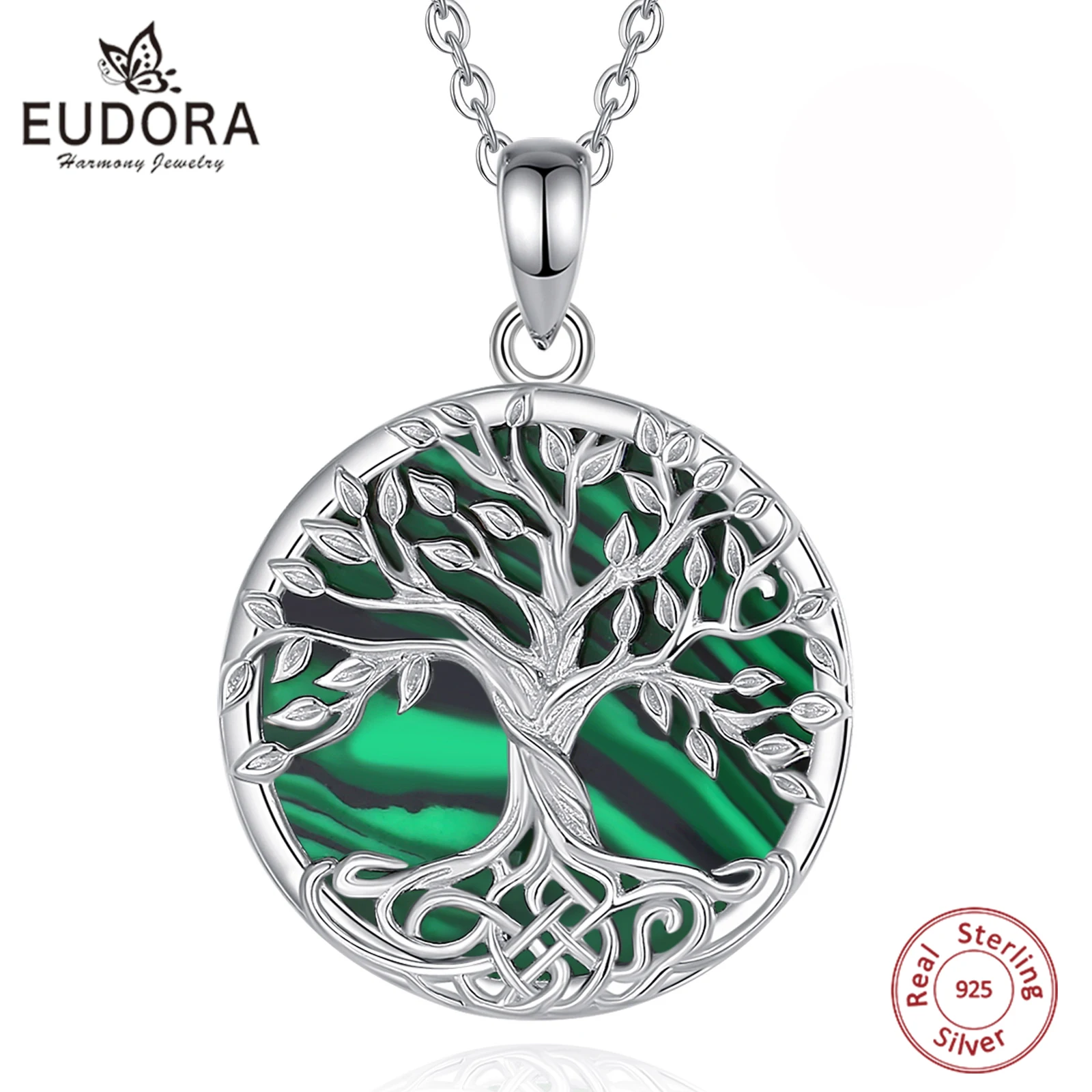 Eudora 925 Sterling Silver Tree of Life Necklace Green Yggdrasil Malachite Pendant Tree Jewelry Mom ...