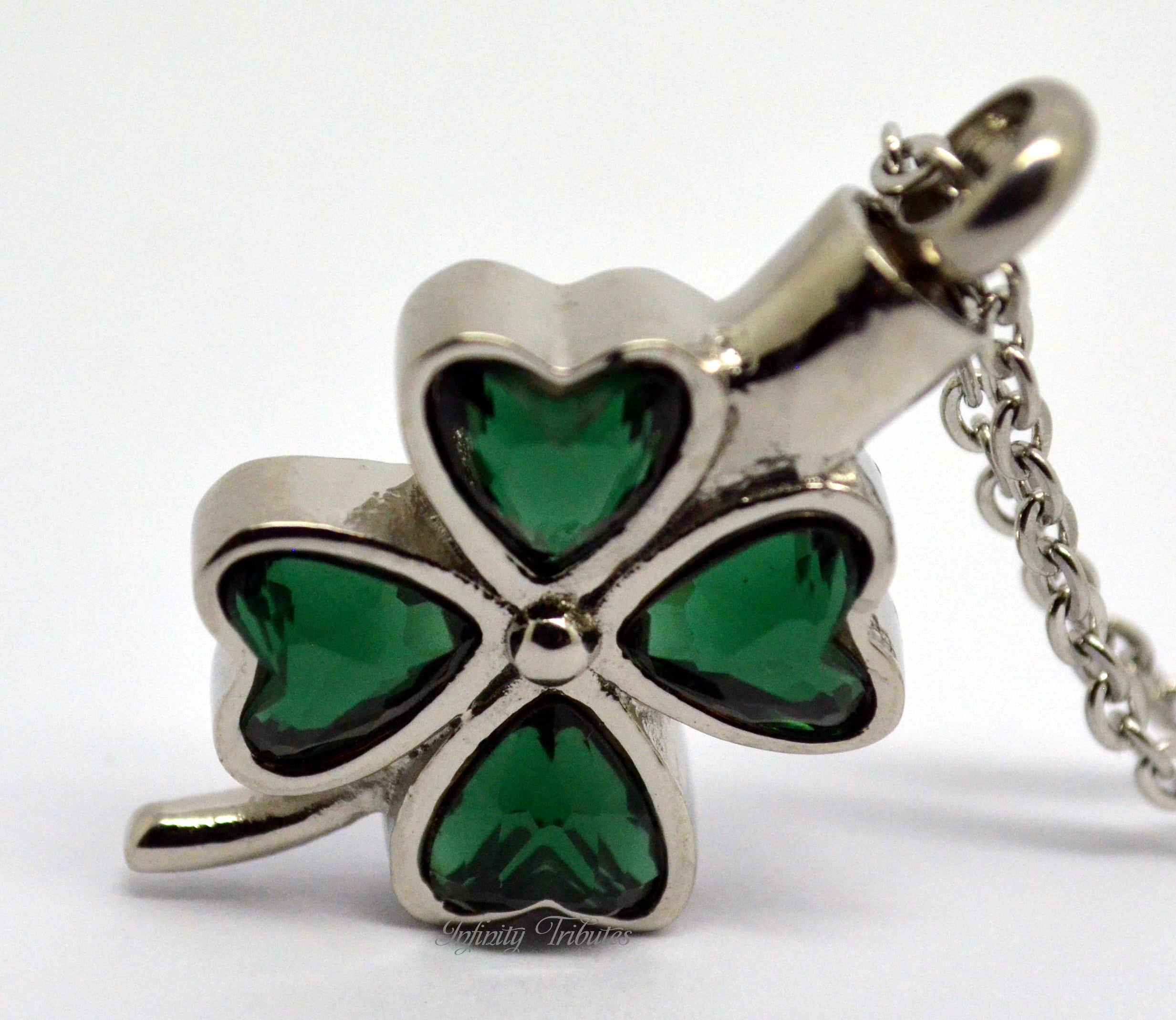 Cremation Urn Ashes Necklace Clover/Shamrock Pendant Keepsake Charm...
