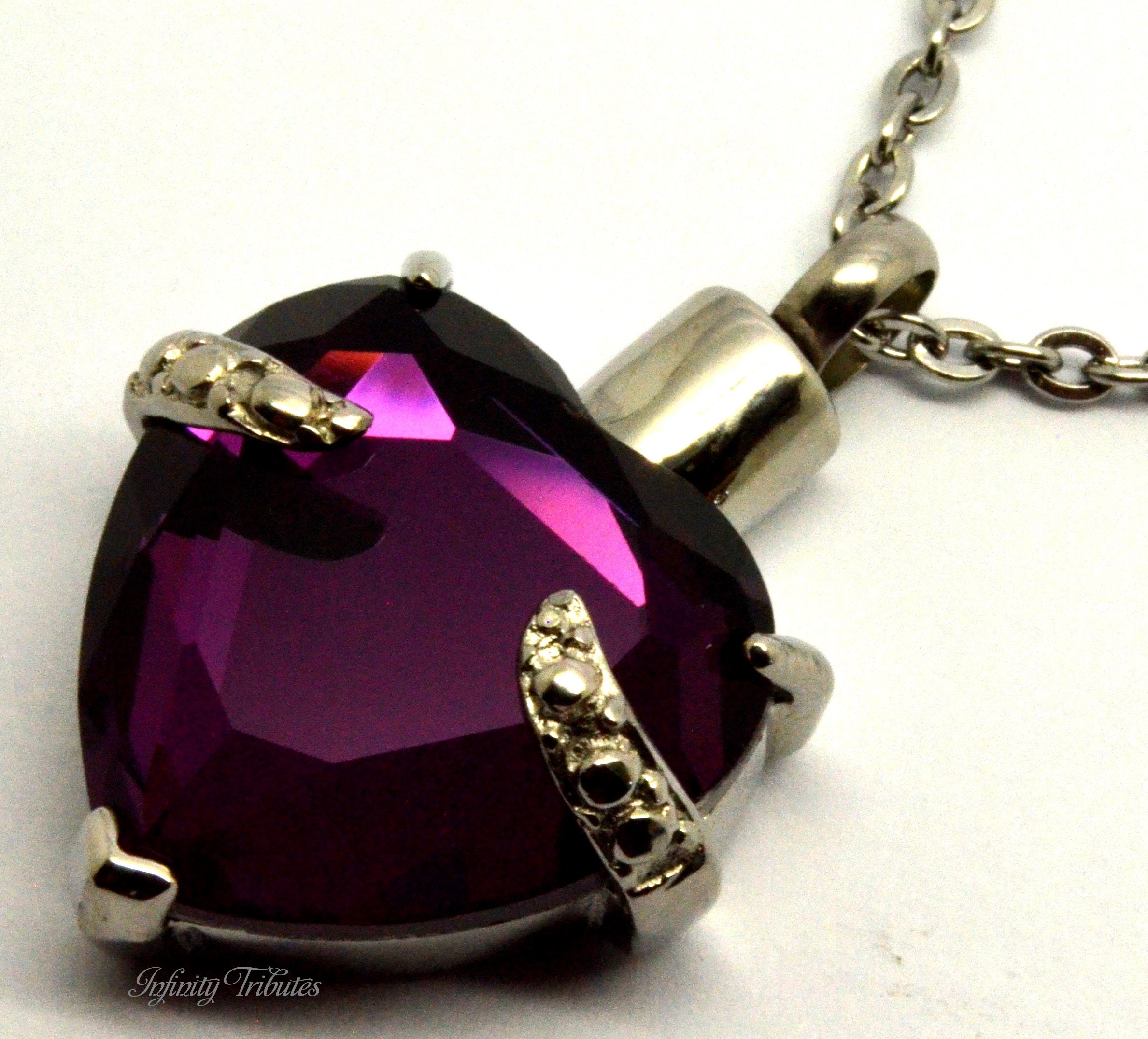 Cremation Urn Ashes Necklace - Purple Heart Keepsake Charm Pendant ...