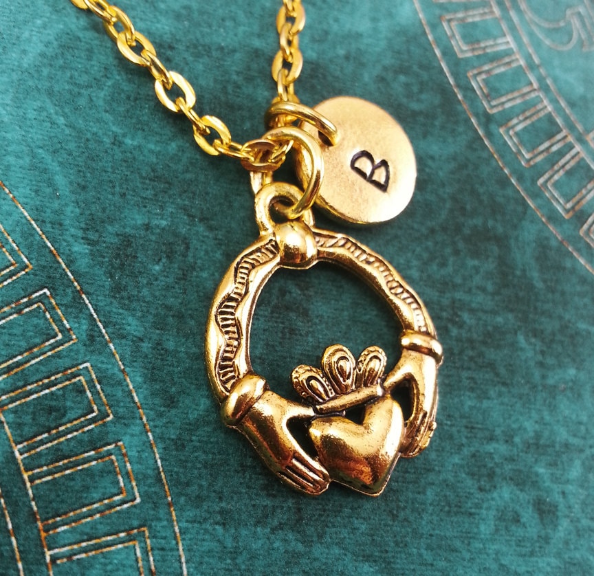 This listing is for a personalized hand stamped Claddagh necklace. Let us know the initial you'd lik...