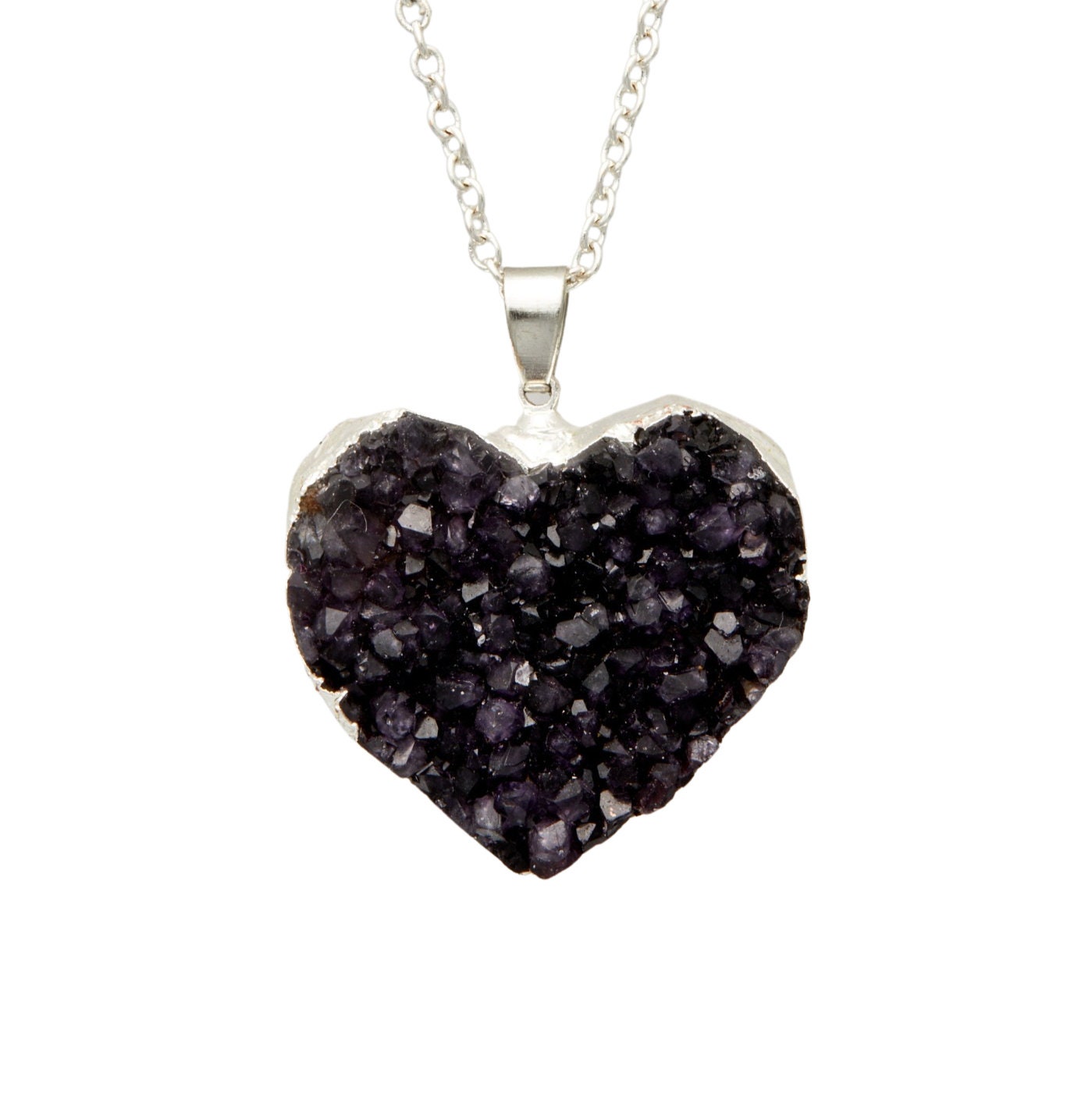 Raw Amethyst Heart Pendant - Amethyst Cluster Necklace - Rough Amet...