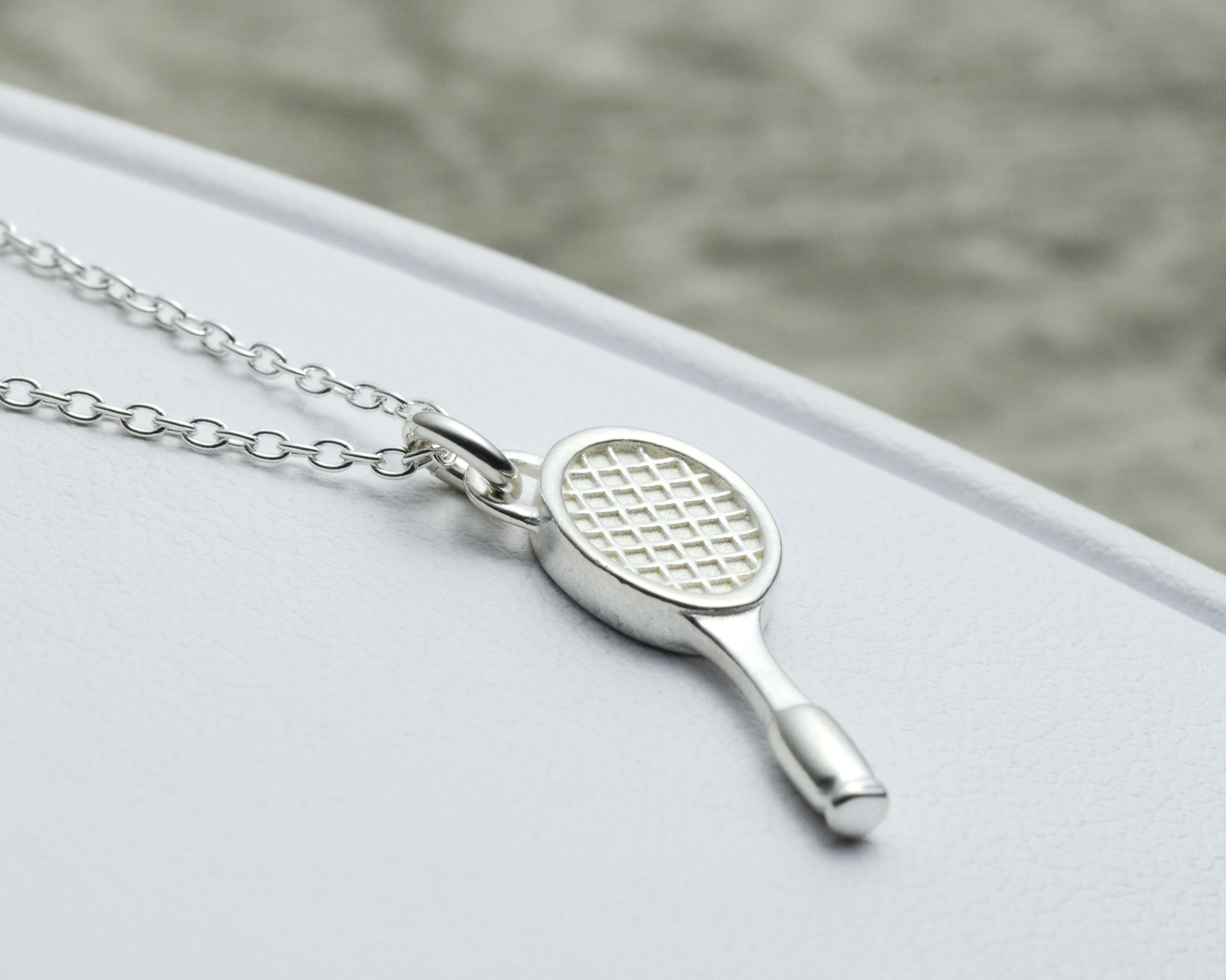 Tennis Necklace Sterling Silver, Tennis Gifts, Tennis Racket Charm,...