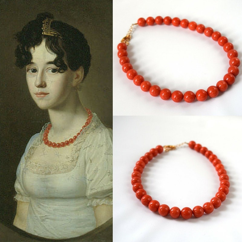 "I've always loved the HUGE Coral beads you see in some Regency-era portraits (the one shown ab...
