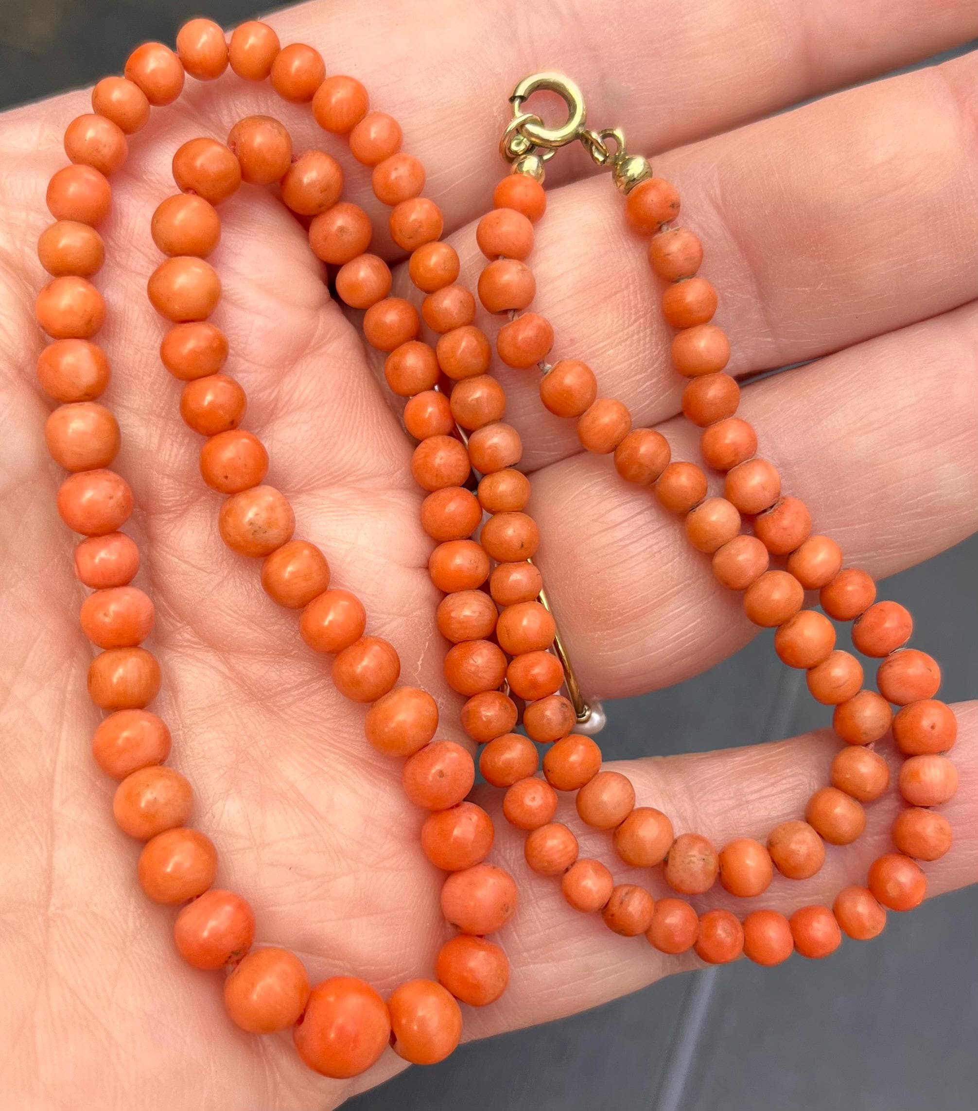 Antique coral necklace\15.5 g antique coral\Necklace mediterranean Natural undyed salmon coral 100% ...
