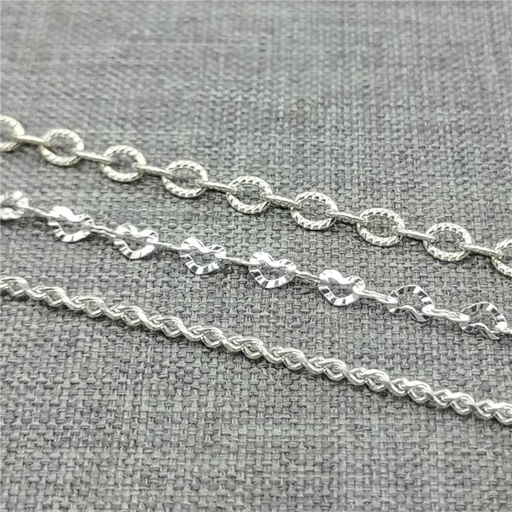 925 Sterling Silver Bulk Twist Cable Chains Hammered Heart Tapped Cable Chain 100cm/3.28ft