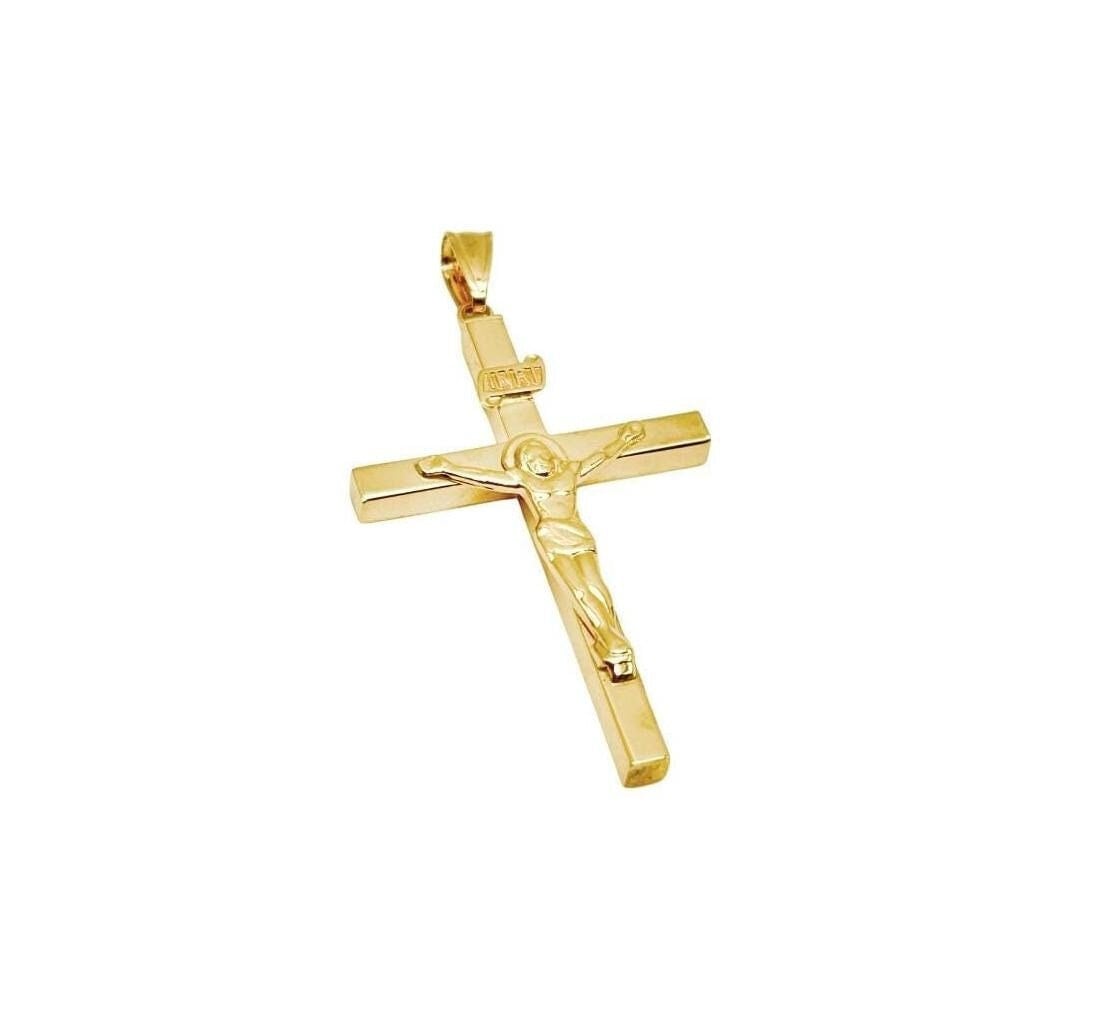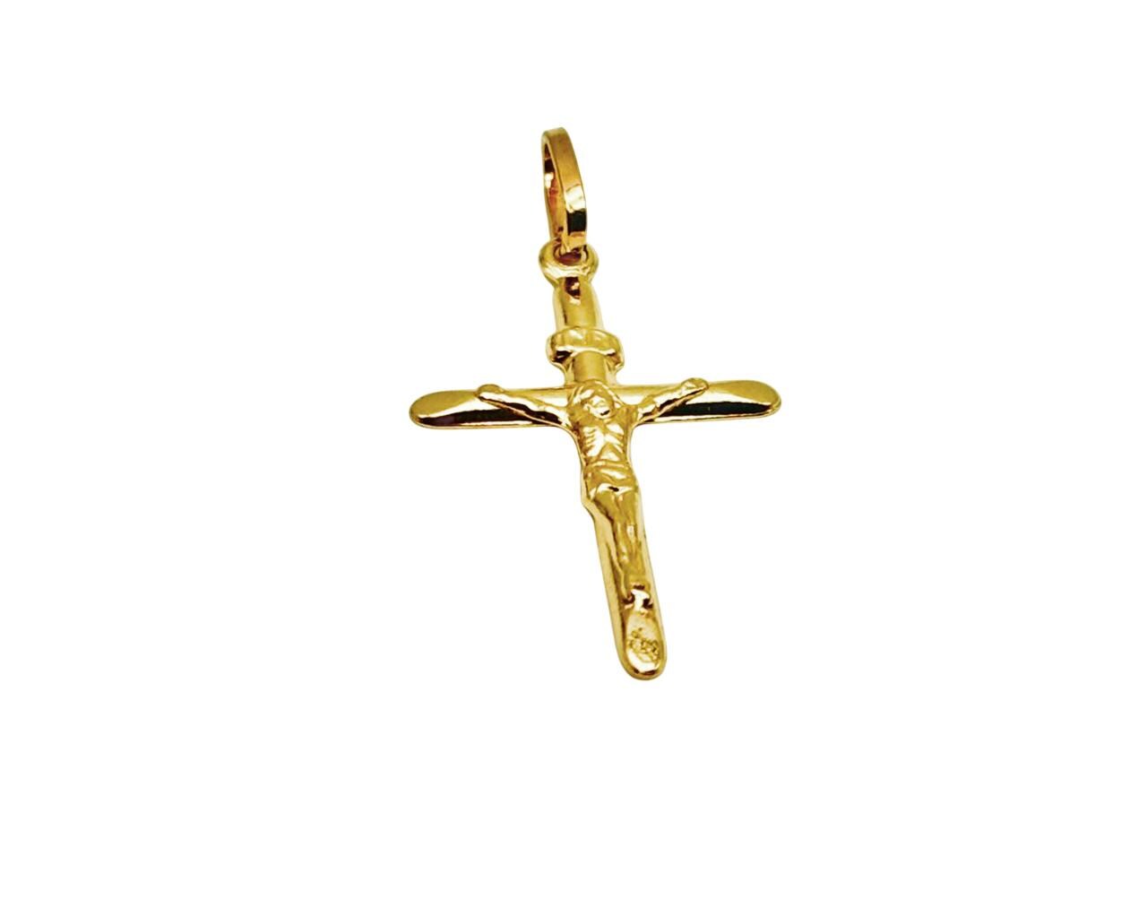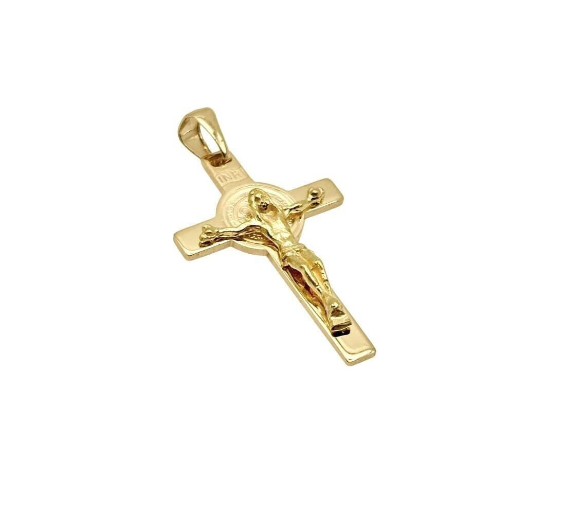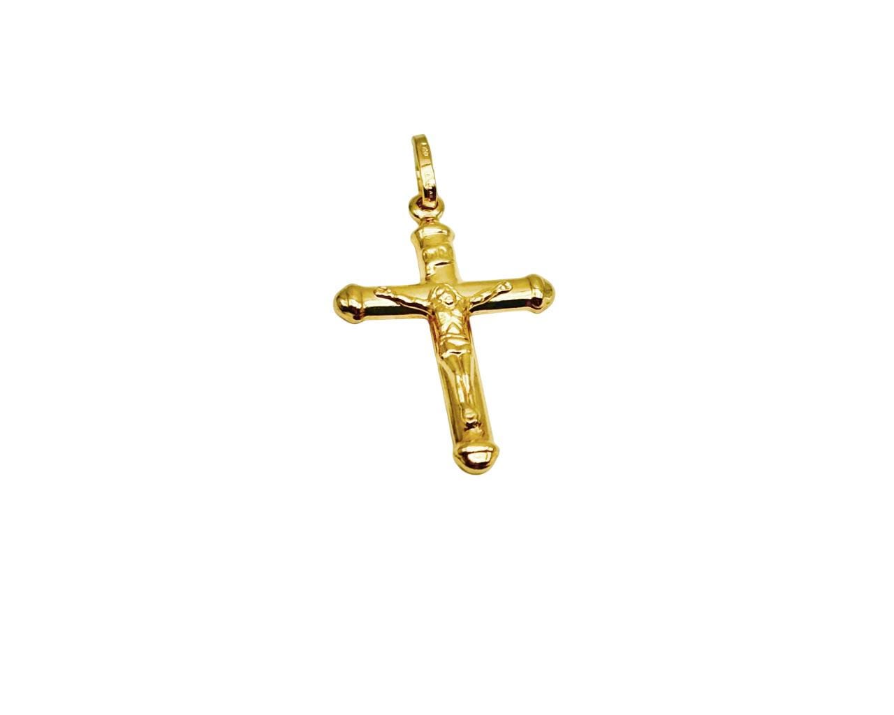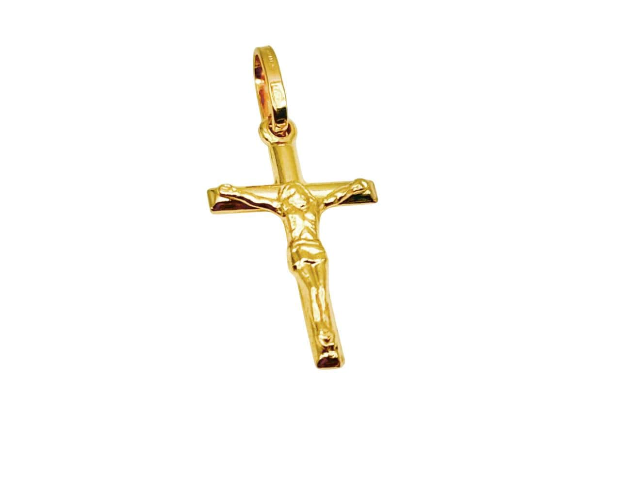 18K Yellow Gold Crucifix Pendant Necklace - Italian Gold Crucifix -...