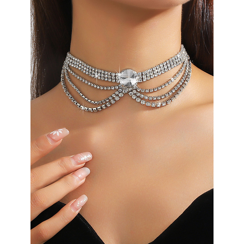 Gender:Women's; Gemstone:Rhinestone; Shape:Oval; Style:Fashion; Jewelry Type:Choker Necklace; Materi...
