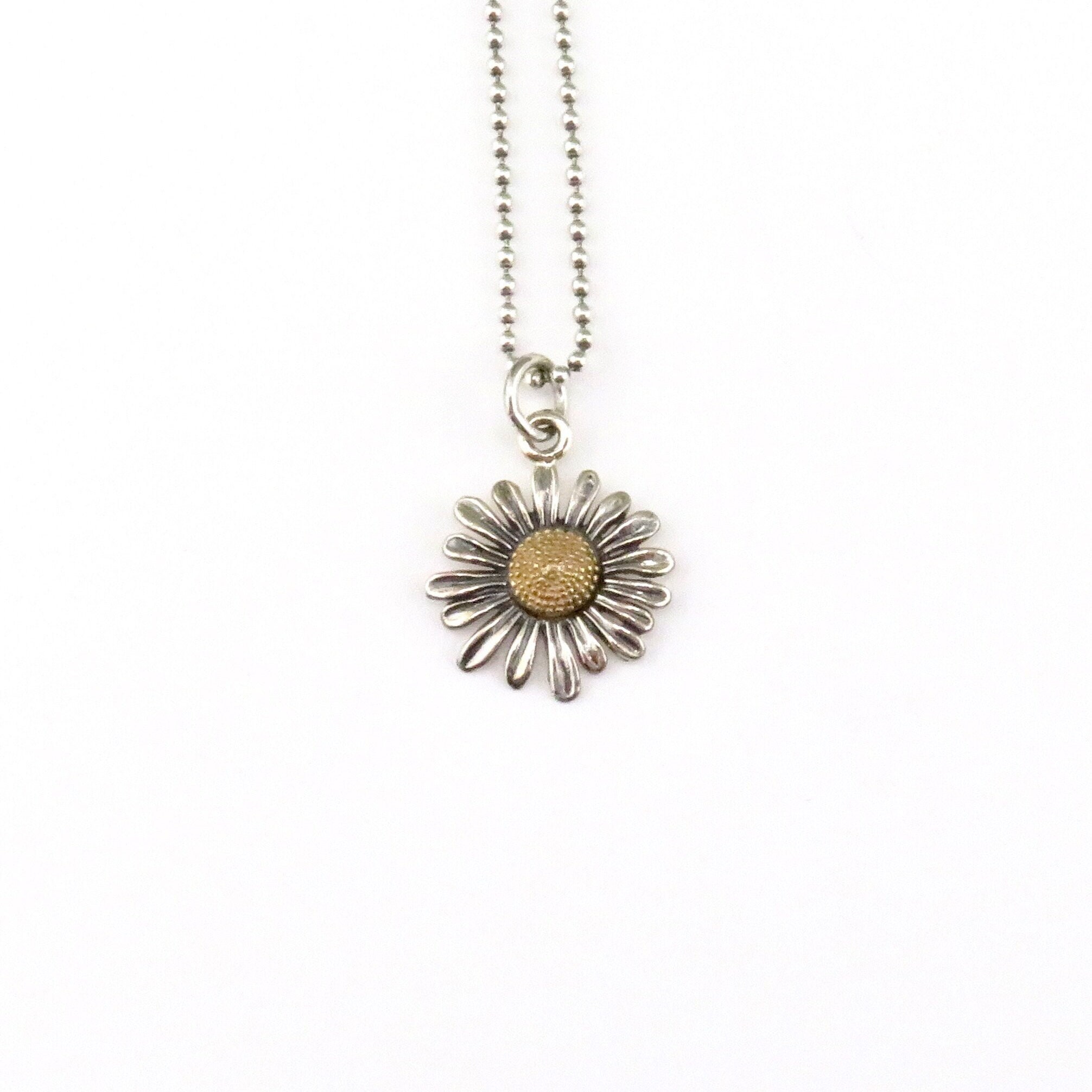 Sterling Daisy Necklace | Two Tone Daisy Necklace | Gold Silver Flo...