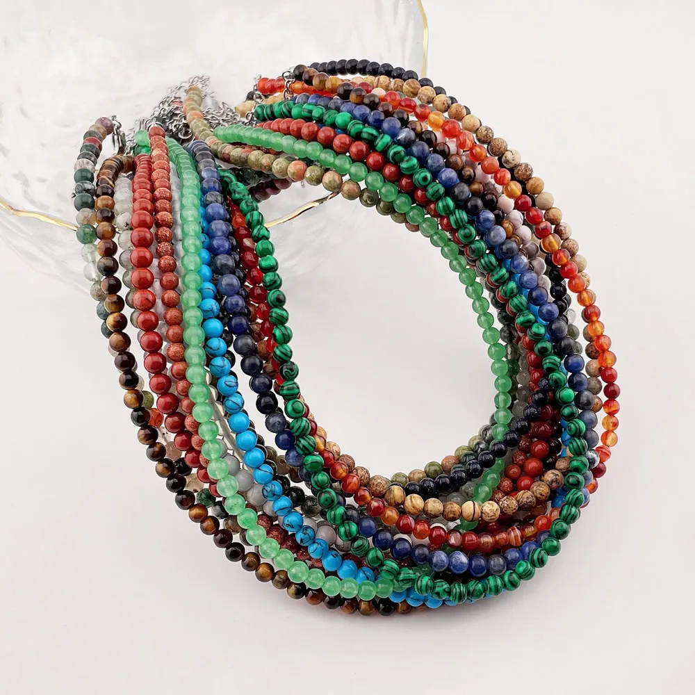 Natural Gem Stone Necklace for Women Man Small Round Beaded Strand ...