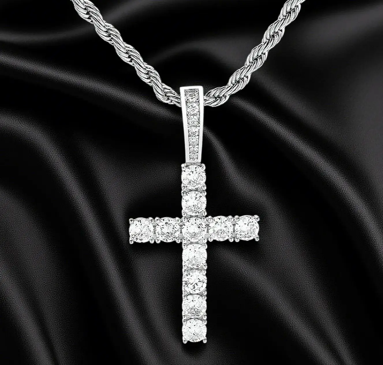 TOPGRILLZ Hot Sale Moissanite Cross Pendant 3mm 4mm 925 Sterling Si...