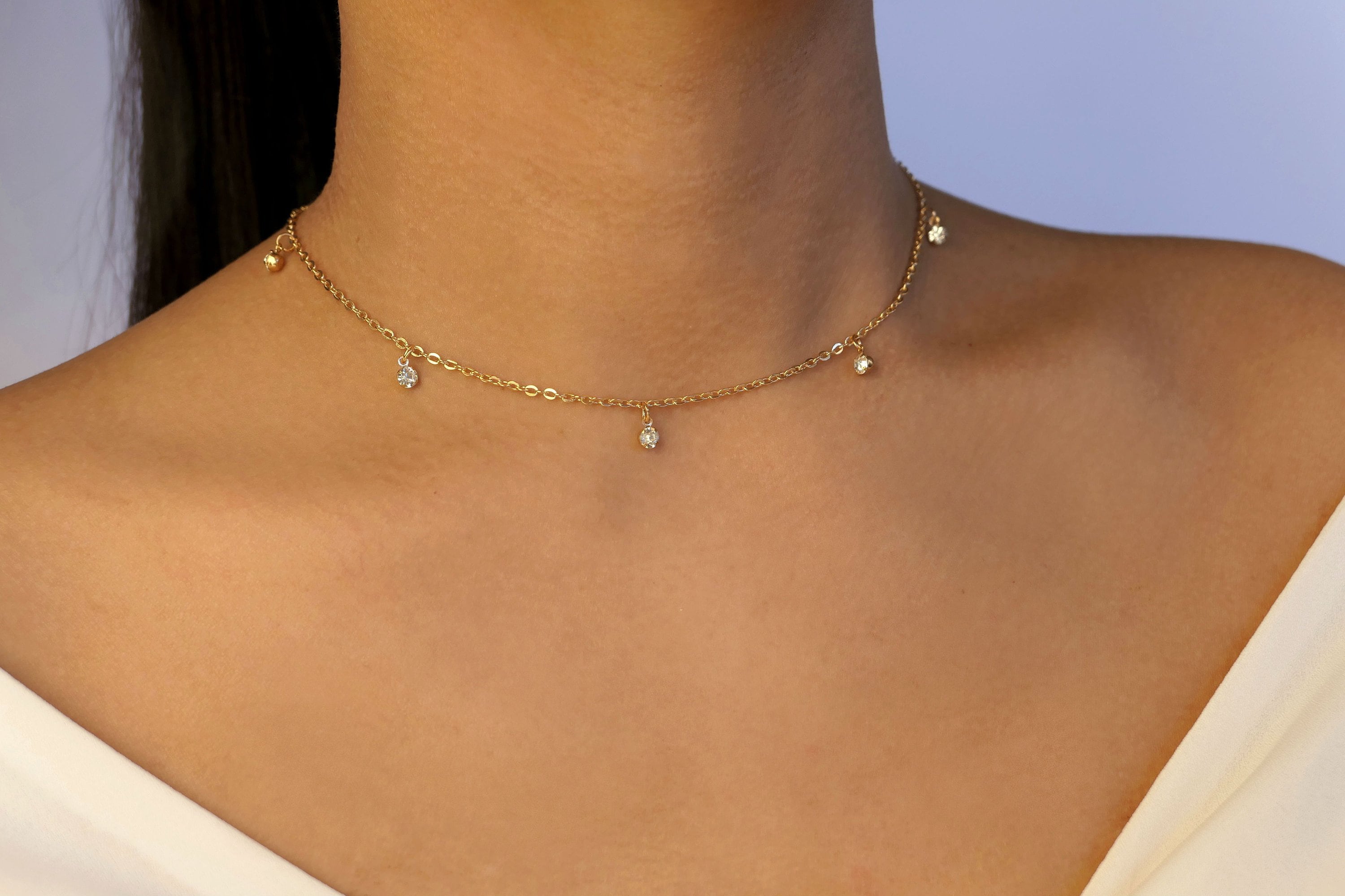 Diamond choker, Choker necklace, Charm choker, Dainty gold necklace...