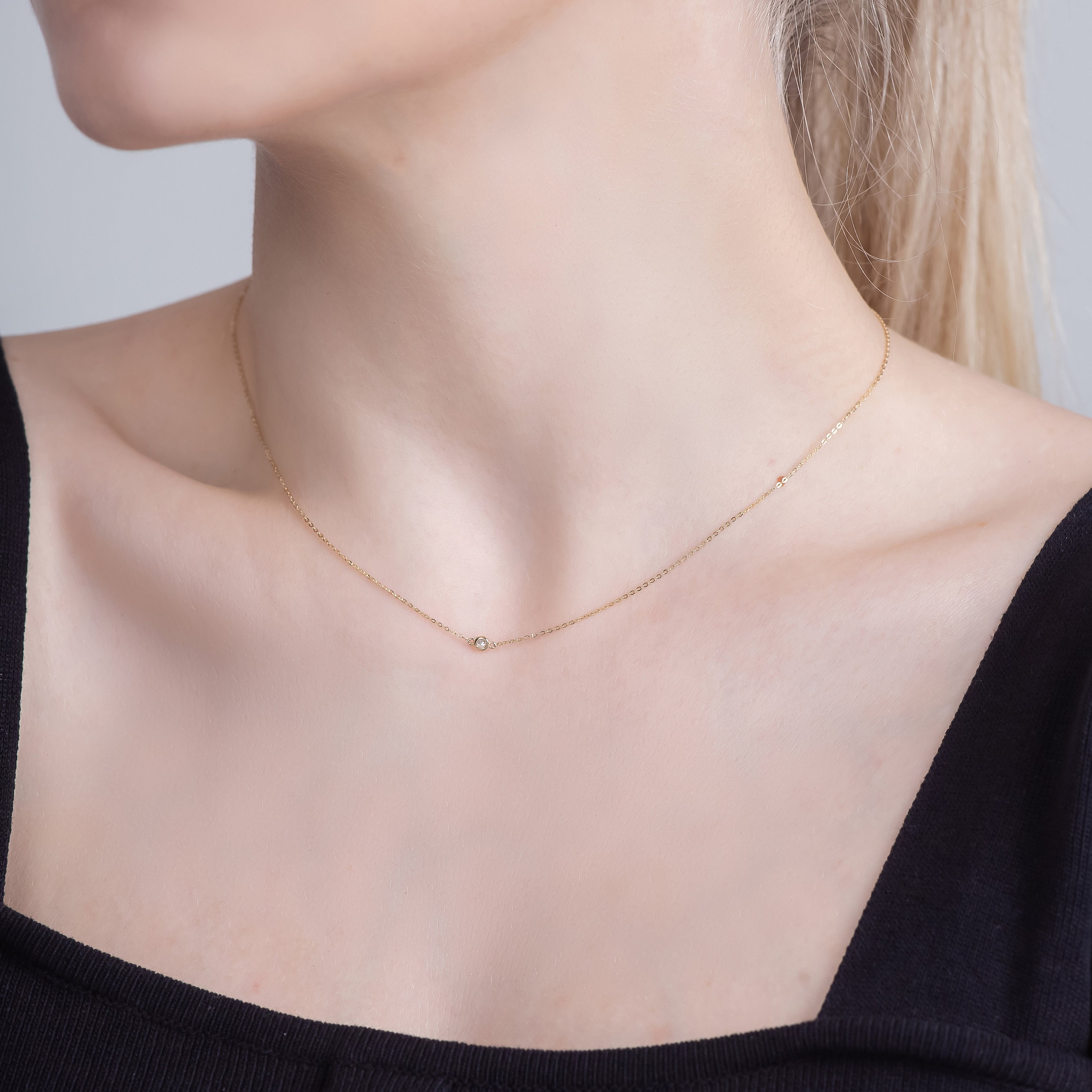"JSVConcepts Fine Jewelry ** The model is wearing the necklace with 0.10 ct. natural diamond in...