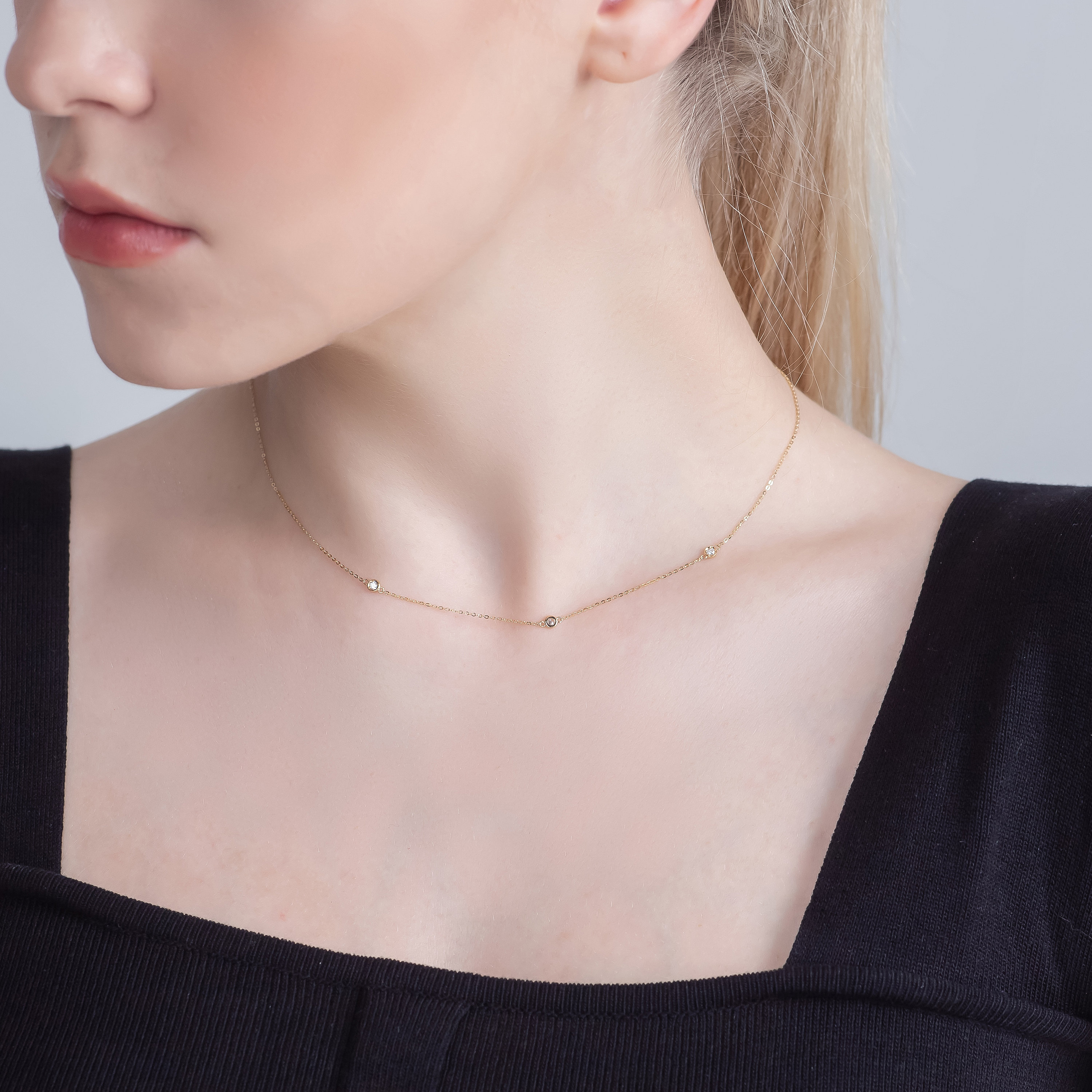 Diamond Choker Necklace, Three Bezel Diamond Choker, Dainty Diamond...