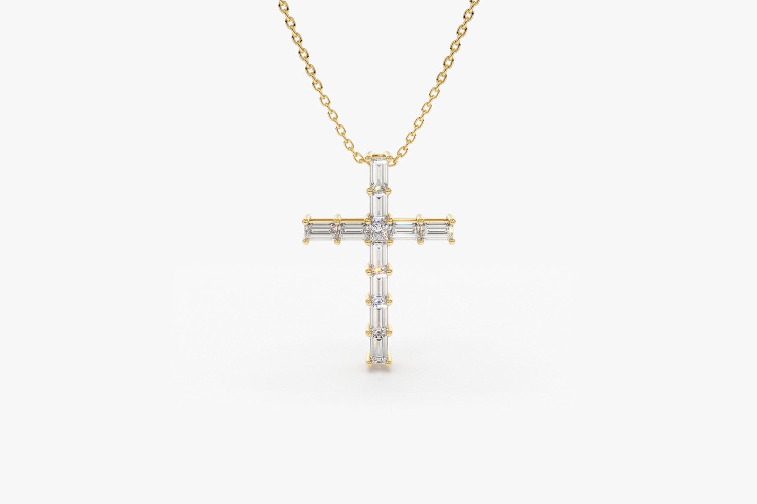 Diamond Cross Necklace / 14k Gold Baguette Diamond cross necklace /...