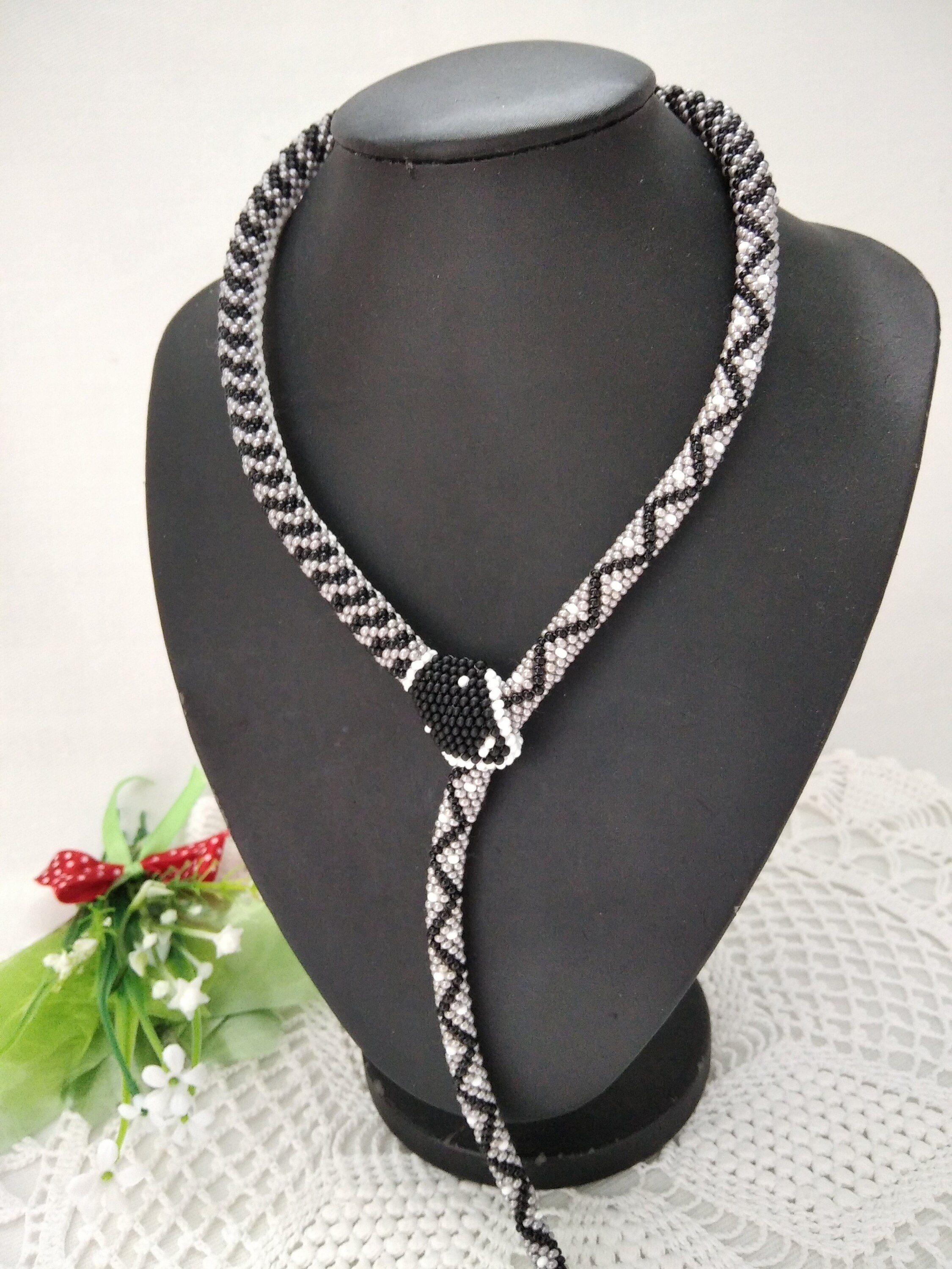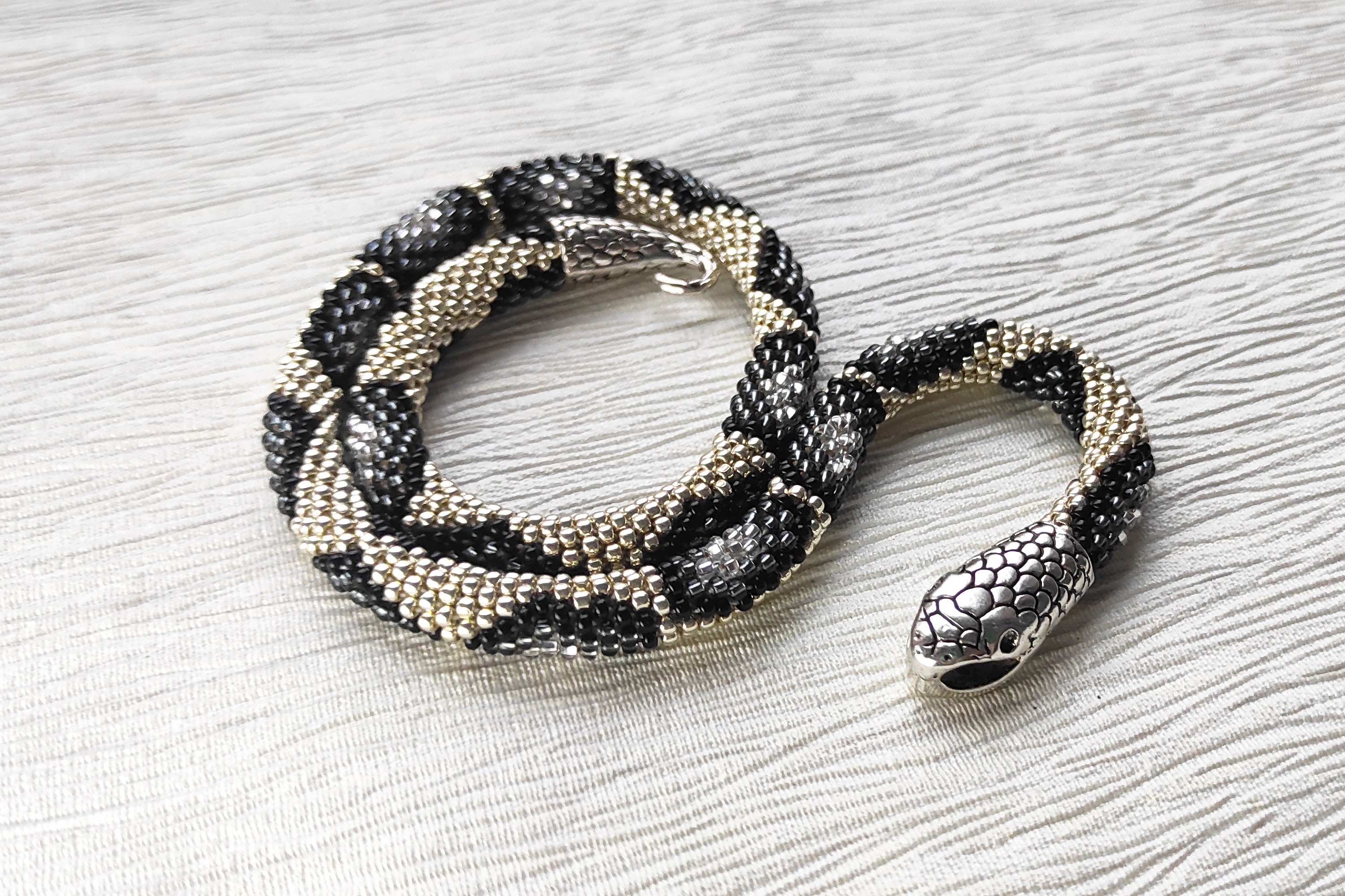 Snake Black White Beige Necklace Snake Beads Crochet Snake Jewelry ...