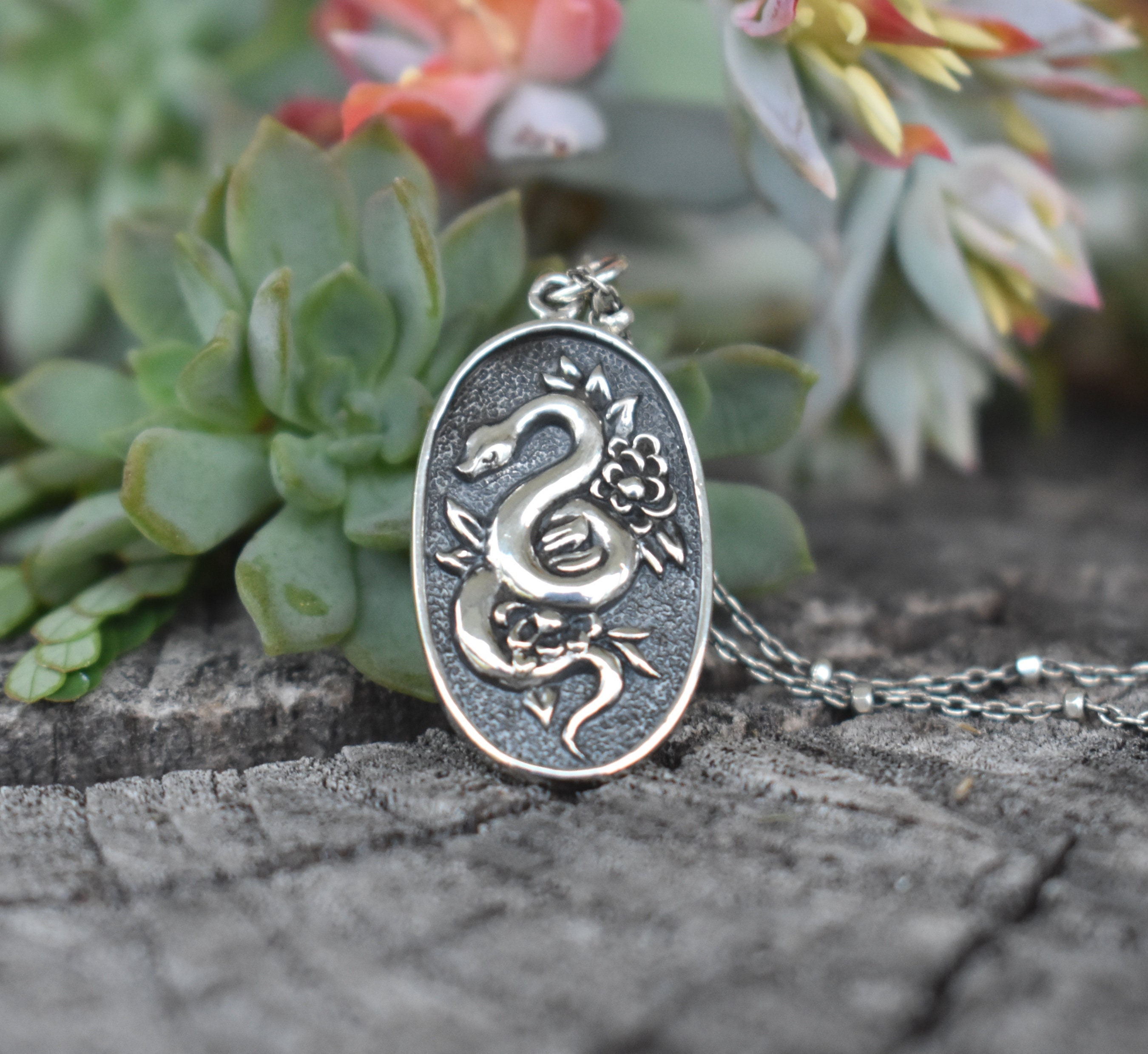 "Floral Snake Cameo Necklace details: -Solid .925 sterling silver -Charm measures 30mm x 15mm -...
