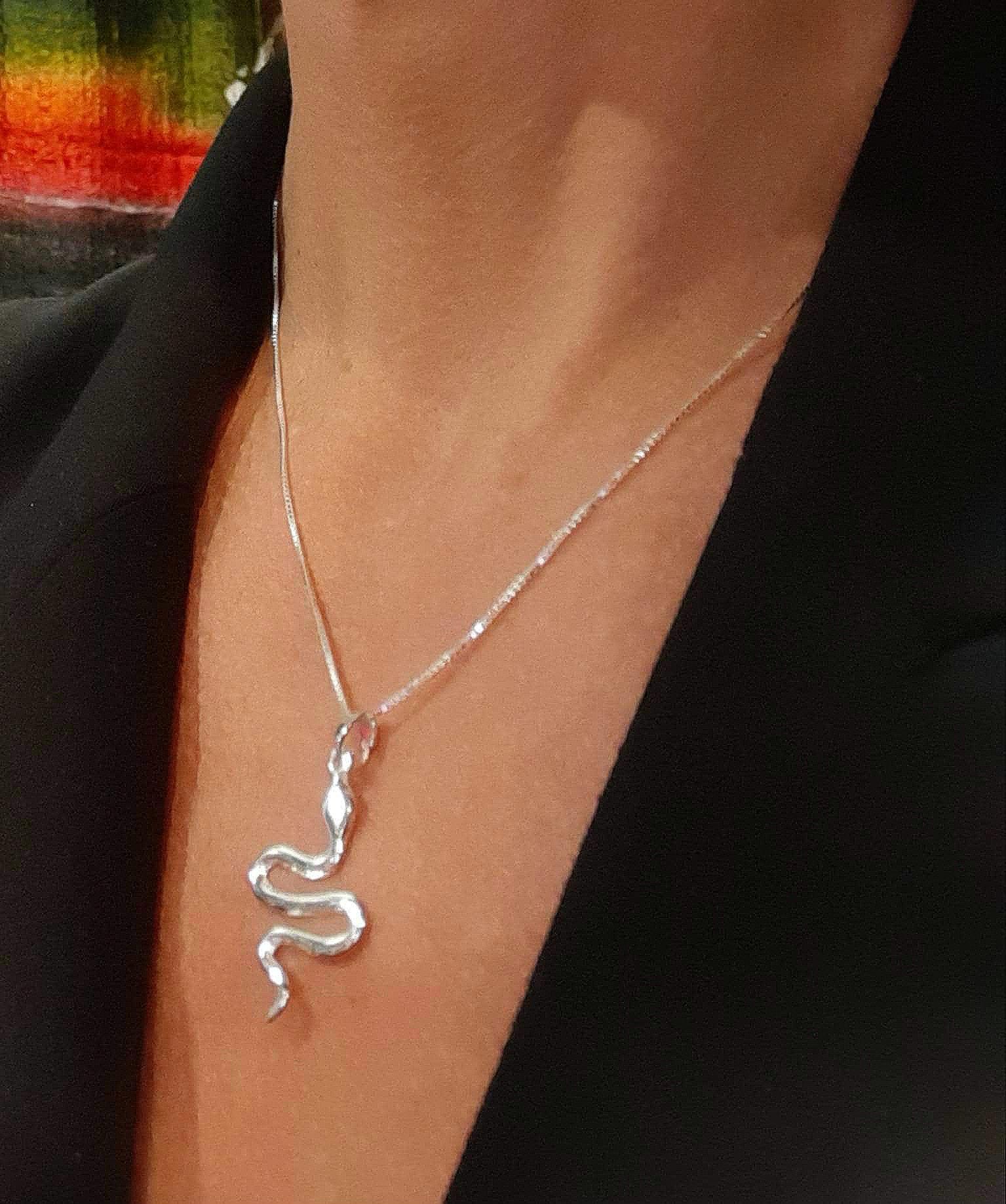 Snake necklace Sterling silver Serpent pendant Snake pendant neckla...