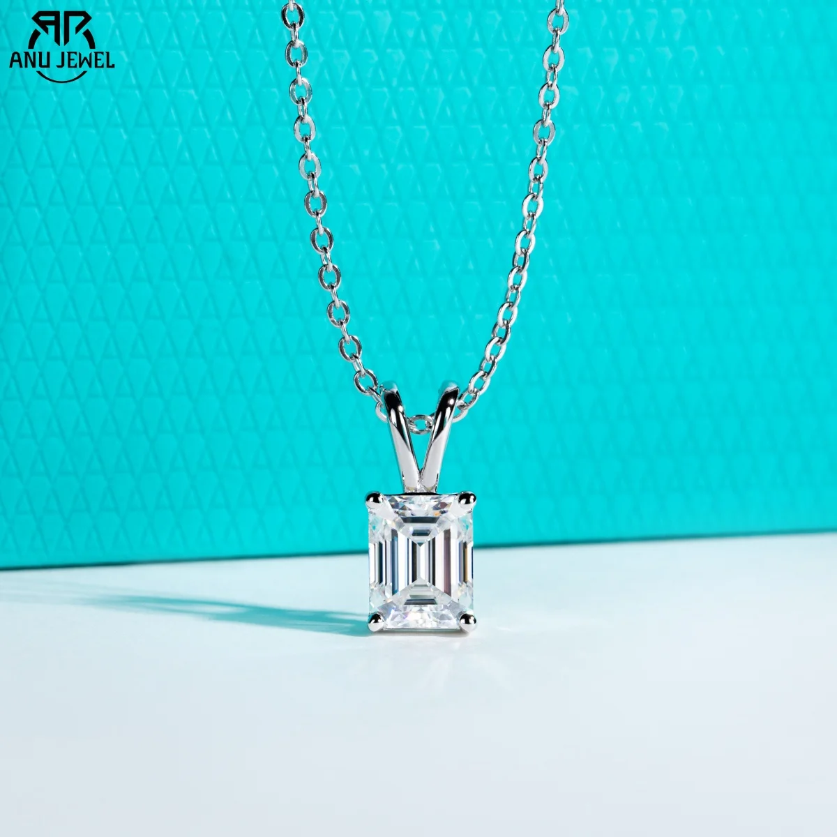AnuJewel 2ct/3ct/4ct/5ct D Color Emerald Cut Moissanite Diamond Pendant Necklace 925 Sterling Silver...