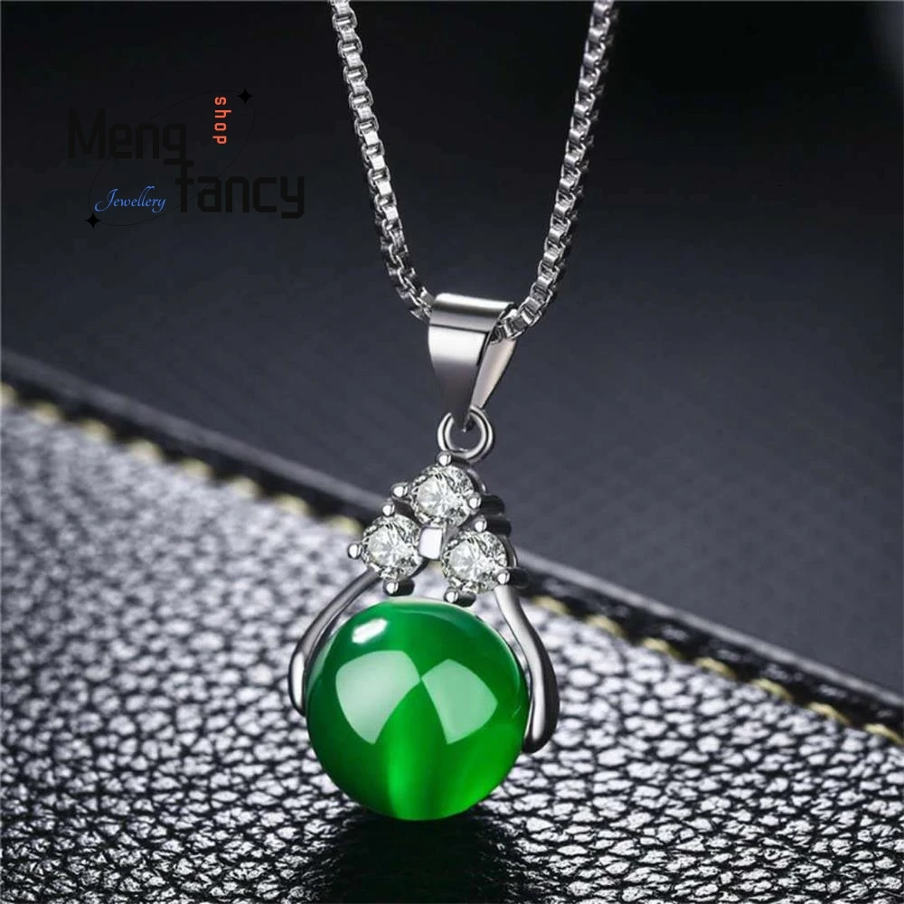 Natural Red Agate Chalcedony Good Luck Beads Emerald Pendant S925 Silver Necklace Exquisite Elegant ...