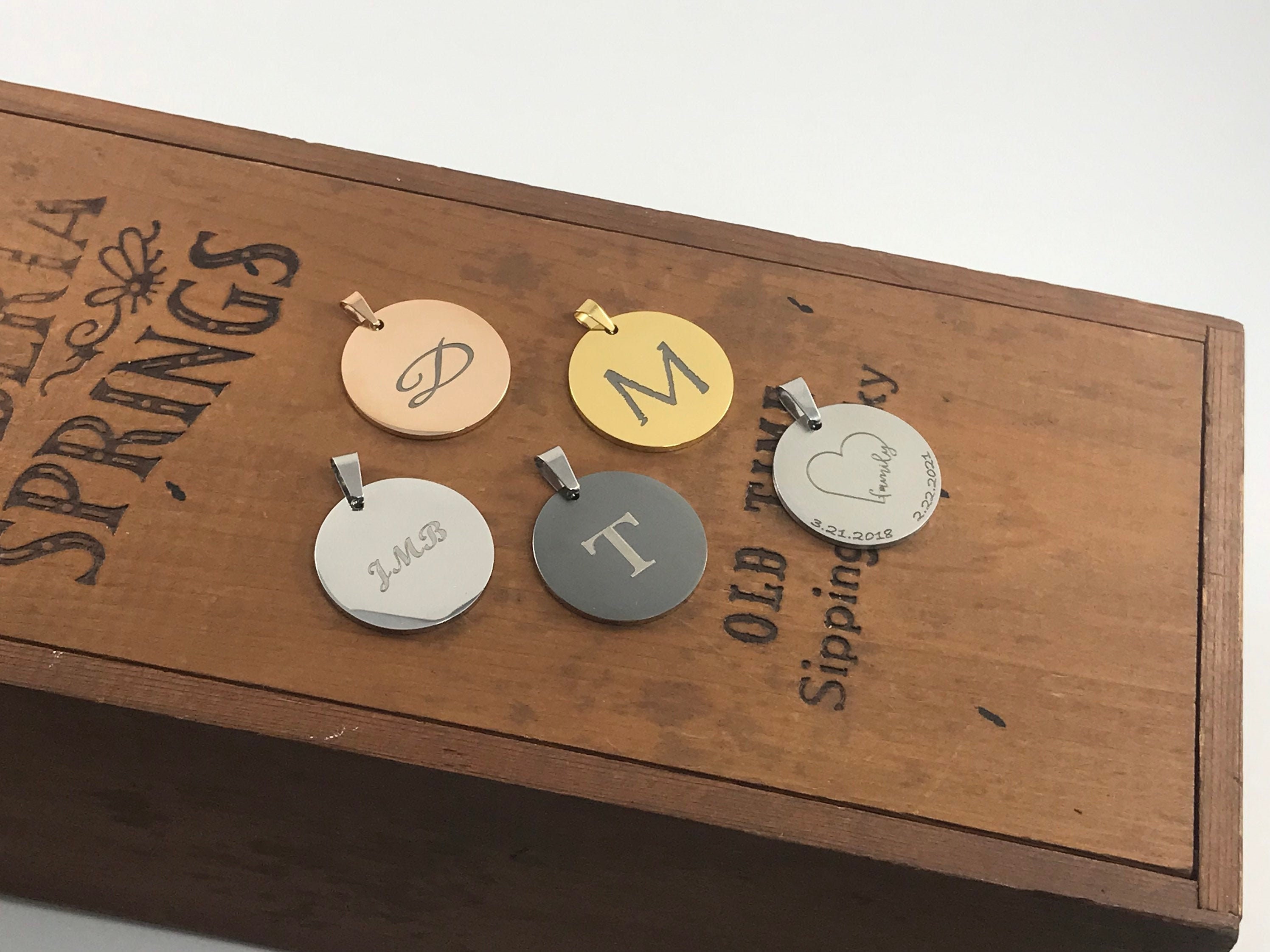 Custom Engraved Coin Pendant - Personalized Engraved Name Charm - E...