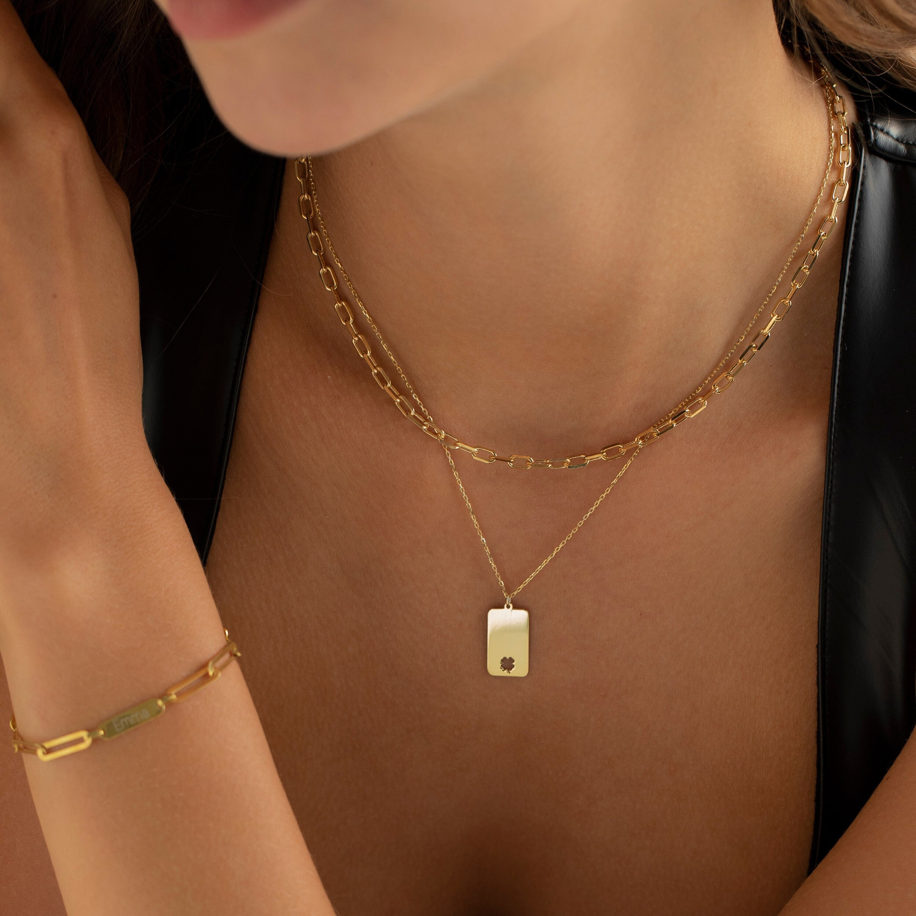 Laser Engraved Necklace w/Clover | Custom Engraved Necklace, Engrav...