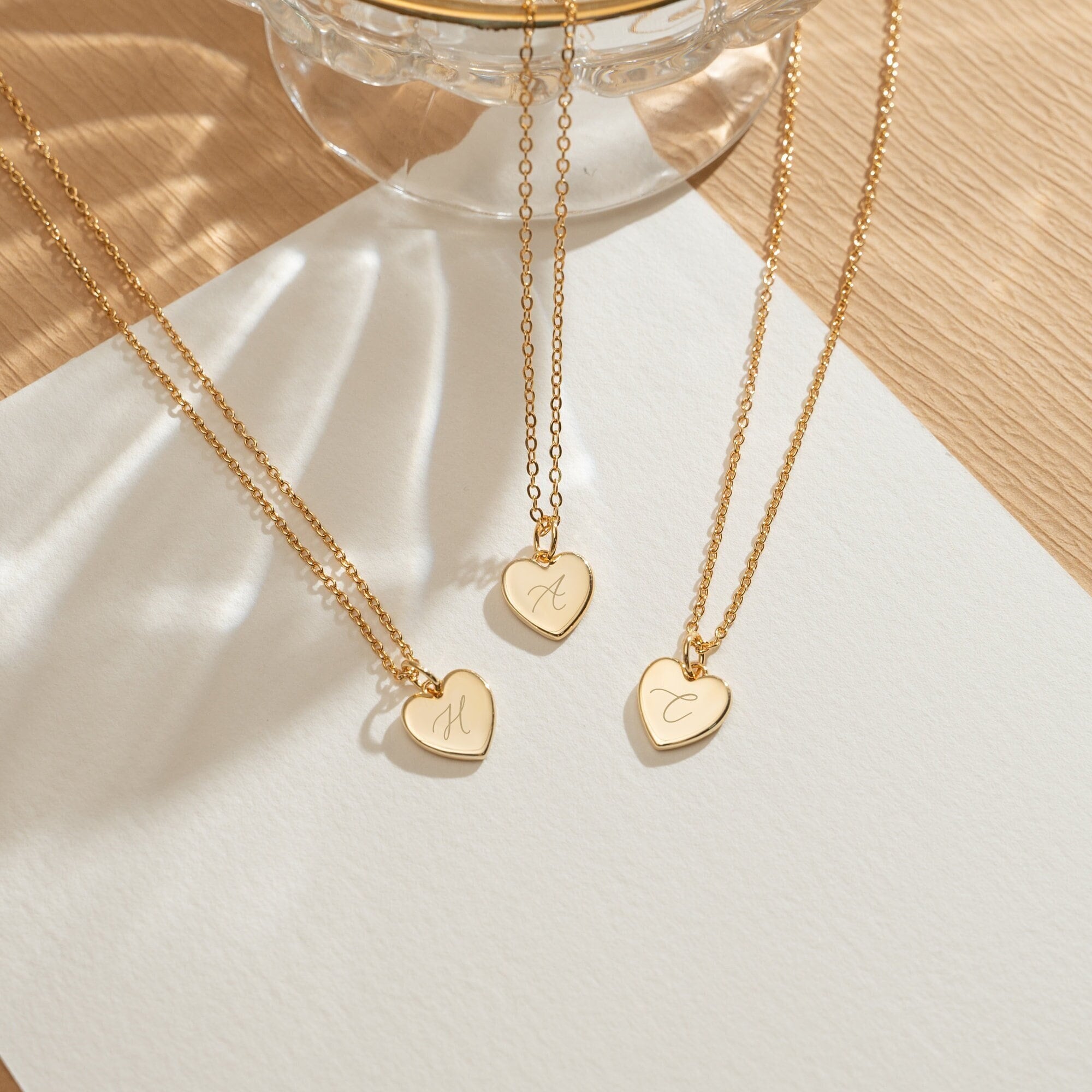 Custom Engraved Heart Necklace,Letter Engraved Heart Necklace,Initi...