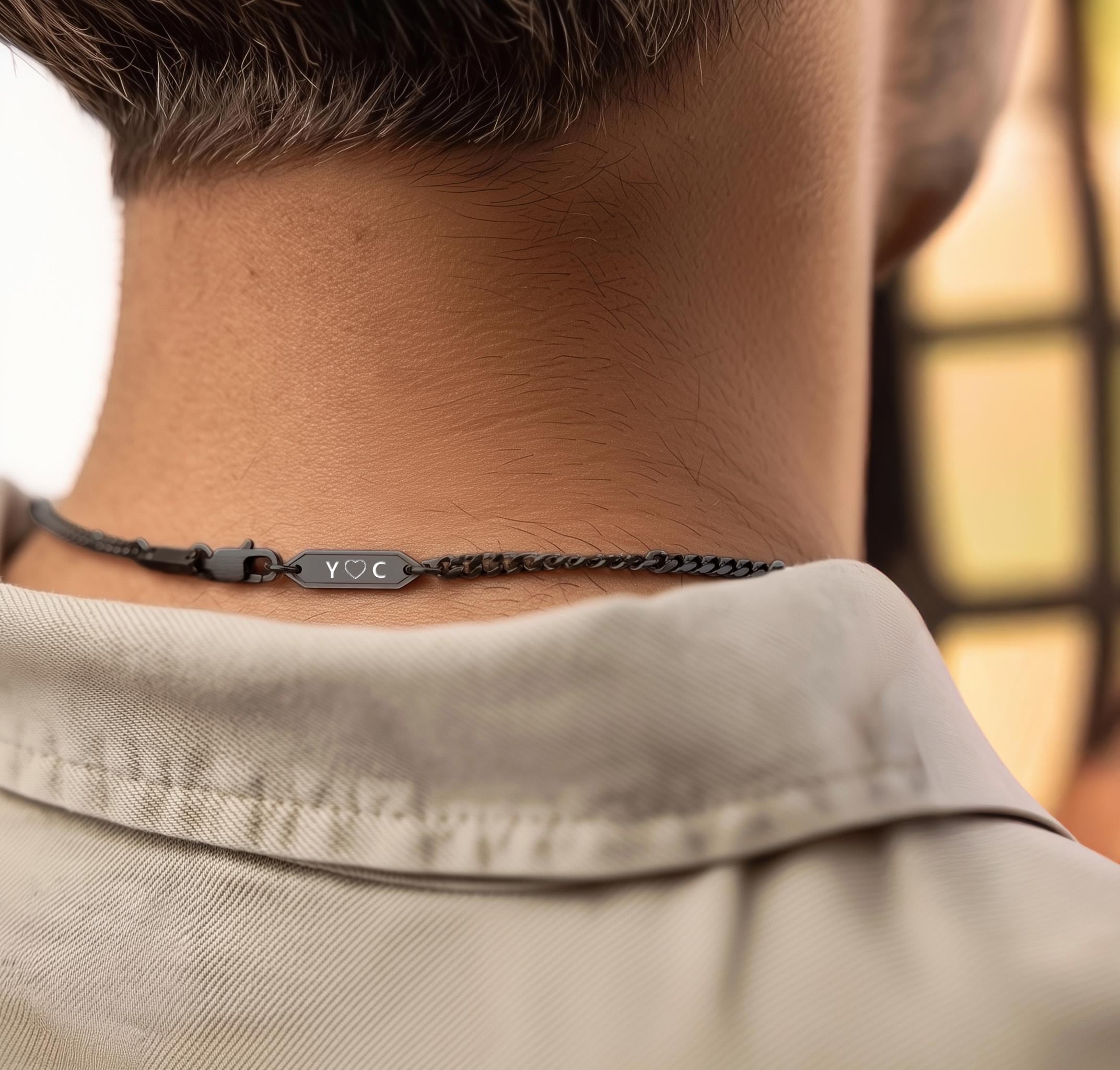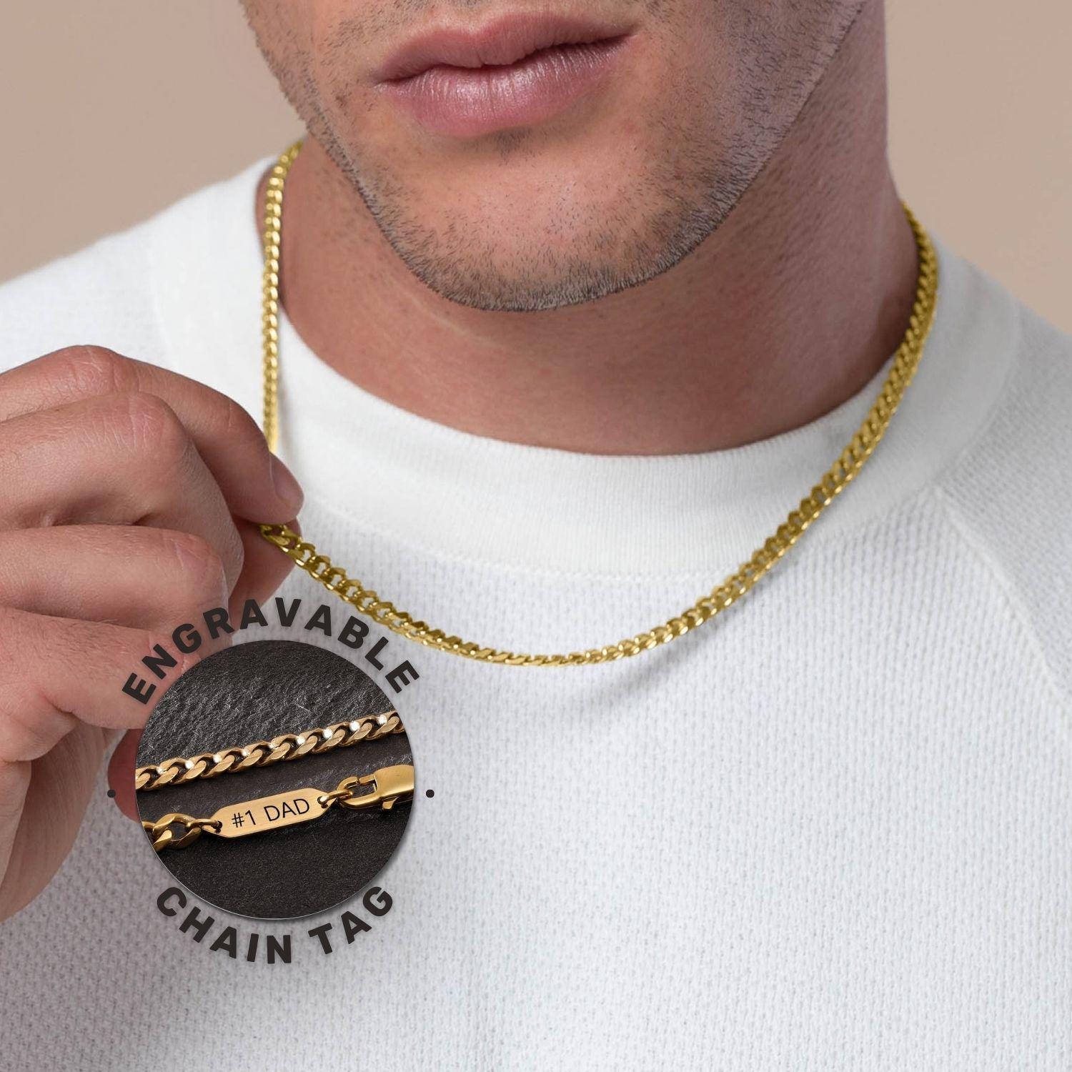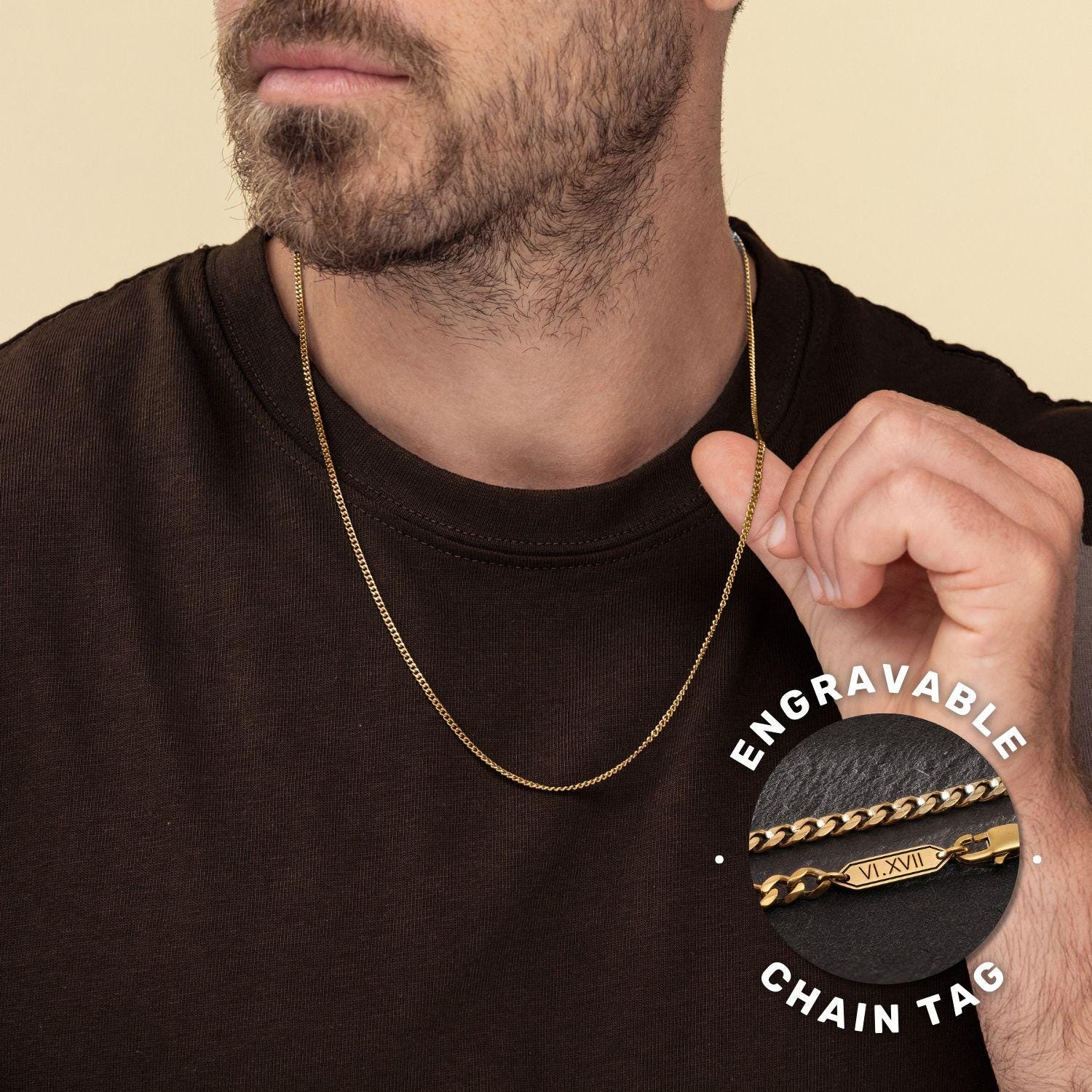 "The Perfect Gift for Him - Custom Gold Engraved Chain Necklace Add a personal touch to his sty...