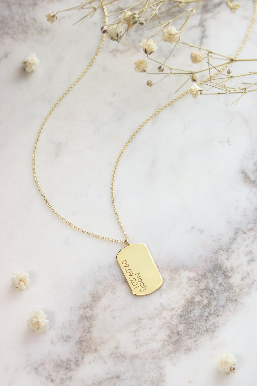 Gold necklace with engraving tag,Personalized gold necklace,Custom ...