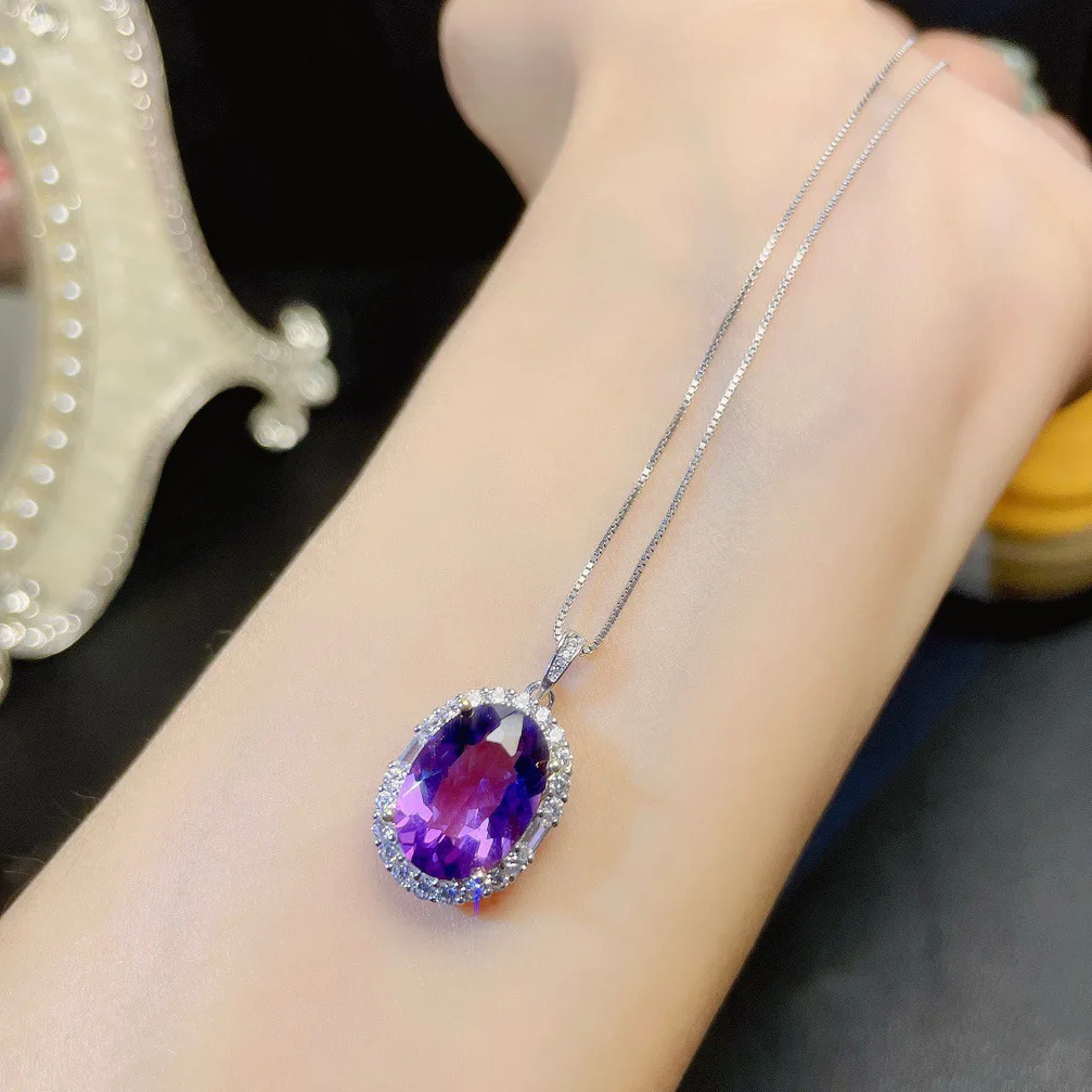 Natural Amethyst Gemstone Pendants Necklaces for Women 925 Sterling Sliver Oval Romantic Wedding Gif...