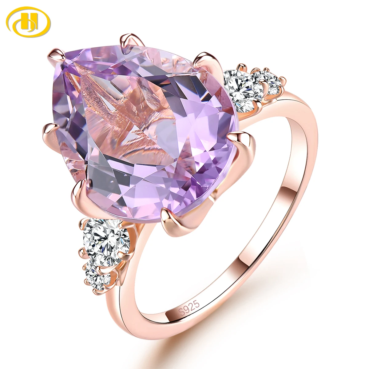 Natural Pink Amethyst Silver Rose Gold Plated 8 Carats Genuine Gemstone Women's Romantic Fine Jewelr...