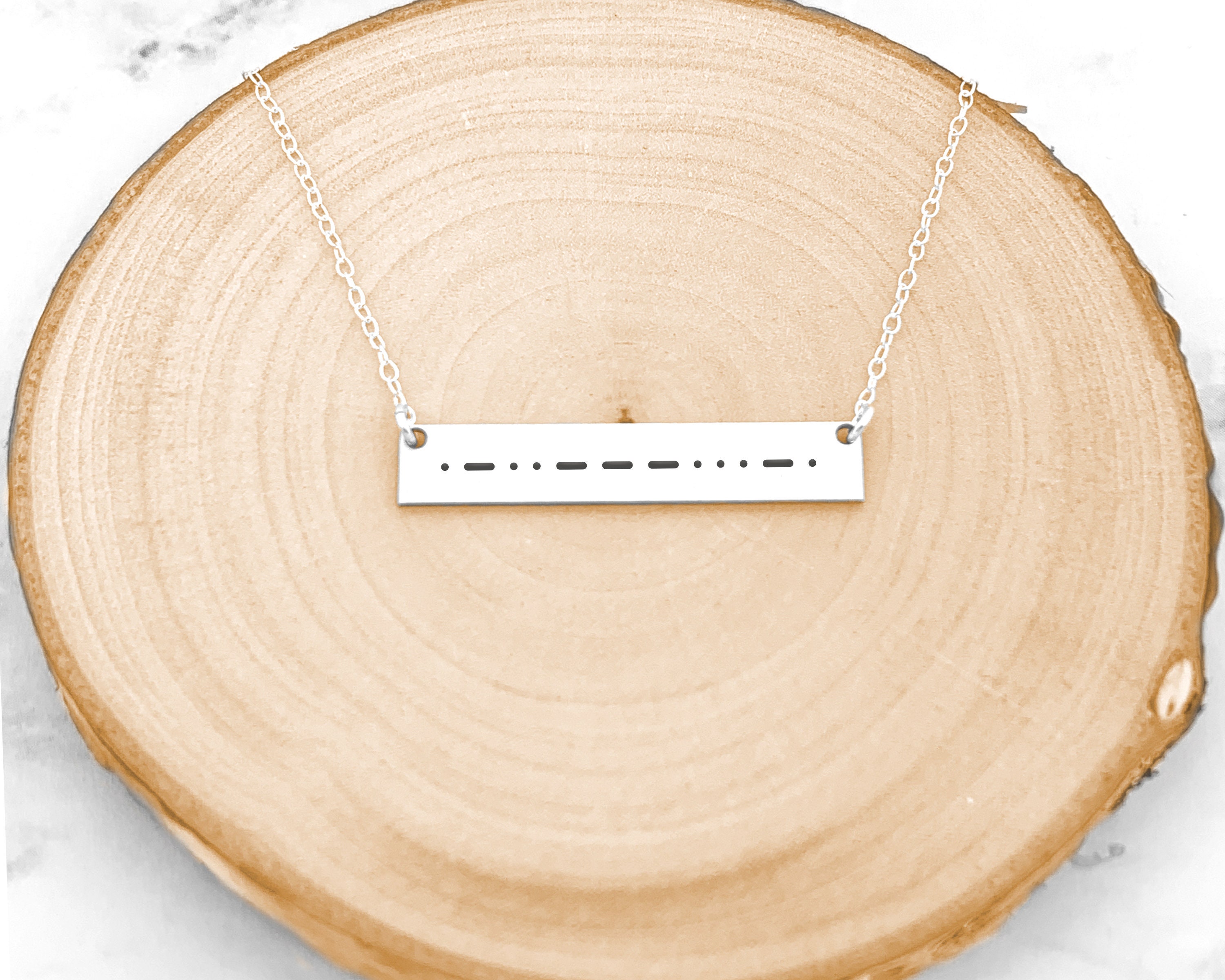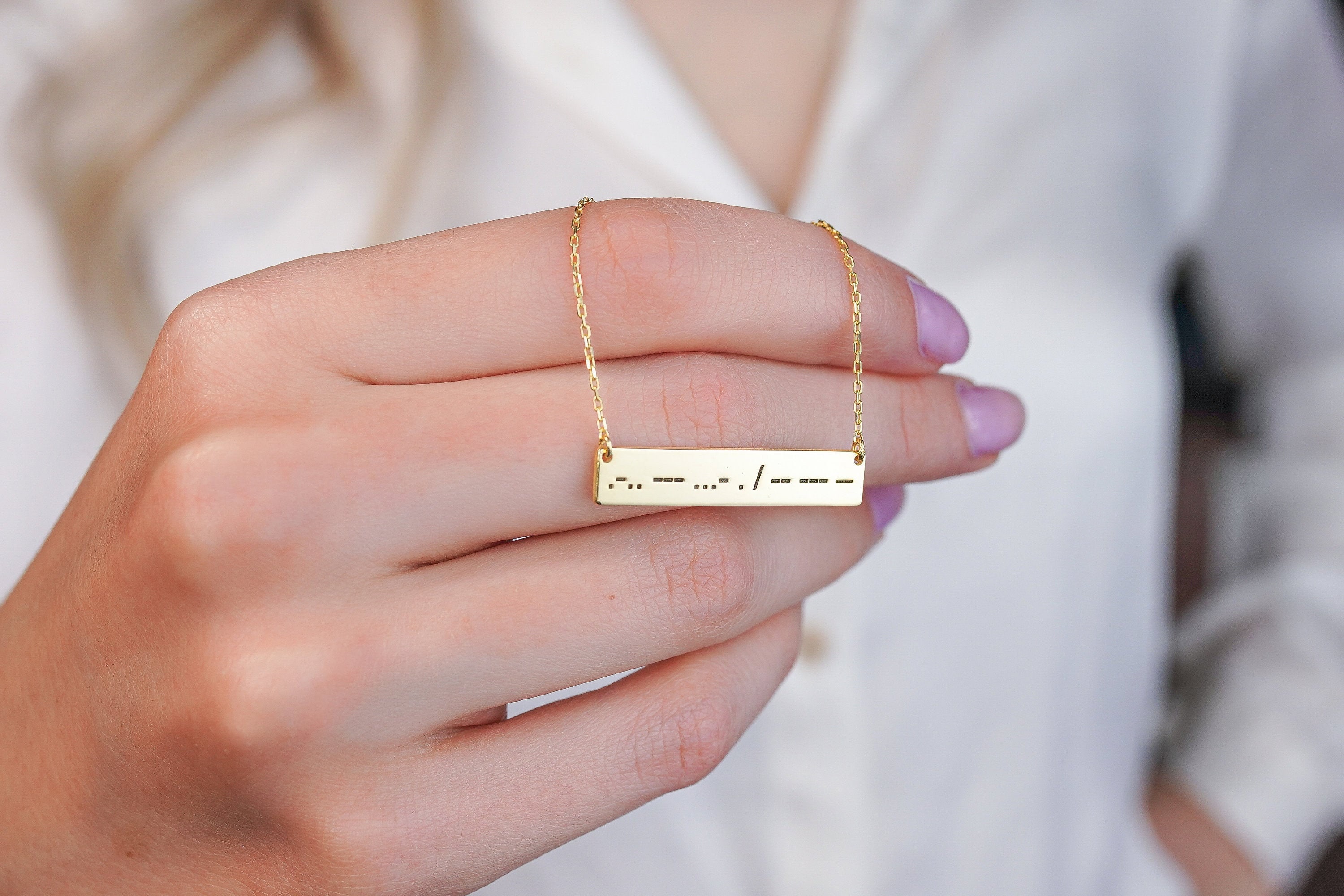 "A meaningful custom Morse Code bar necklace with your own secret message in silver, gold or ro...