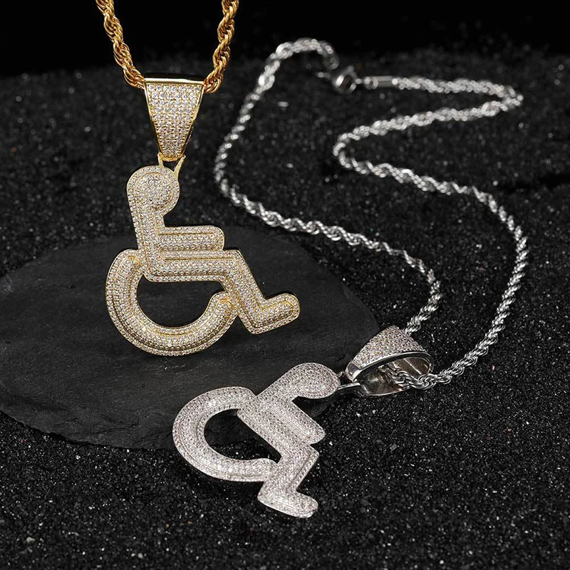 Hip Hop 3A+ CZ Stone Paved Bling Iced Out Disability Sign Wheelchair Pendants Necklace for Men Rappe...