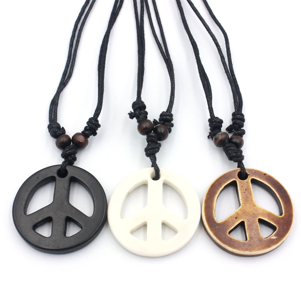 Y2k Men's New Trendy All-match Vintage Peace Necklace Imitation Bone Carved Peace Sign Necklace for ...