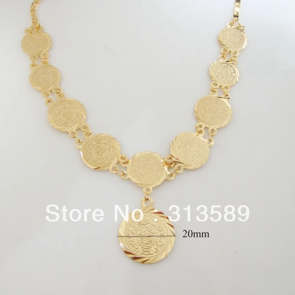 YELLOW GOLD PLATED 17.7INCH MUSLIM ISLAMIC MONEY SIGN LINKED NECKLACE Great Gift