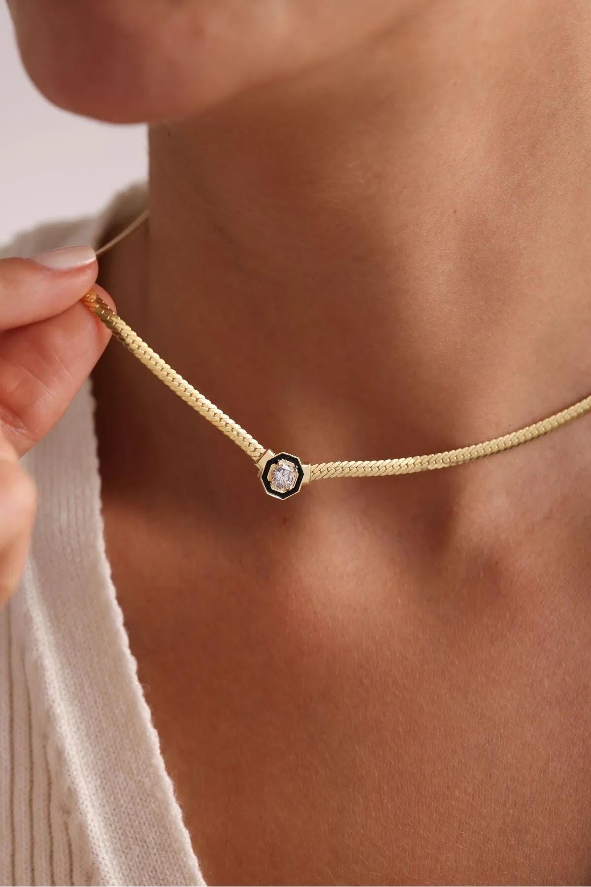Here is an elegant Snake Chain Necklace with a Solitaire. Perfect choice for your night dress or as ...