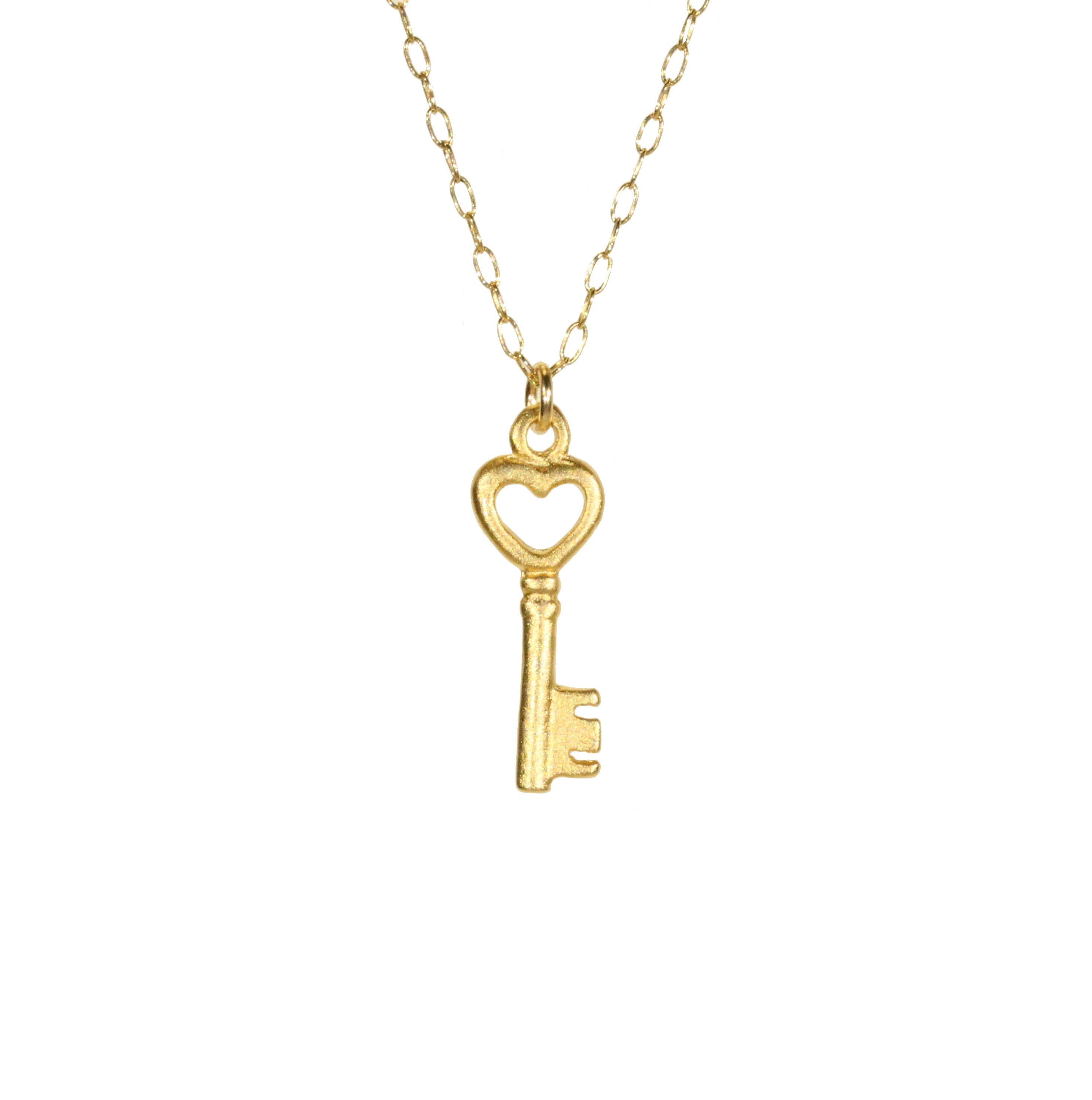 Gold key necklace, key to my heart, tiny key necklace, heart key lock, a dainty 14k gold vermeil ske...