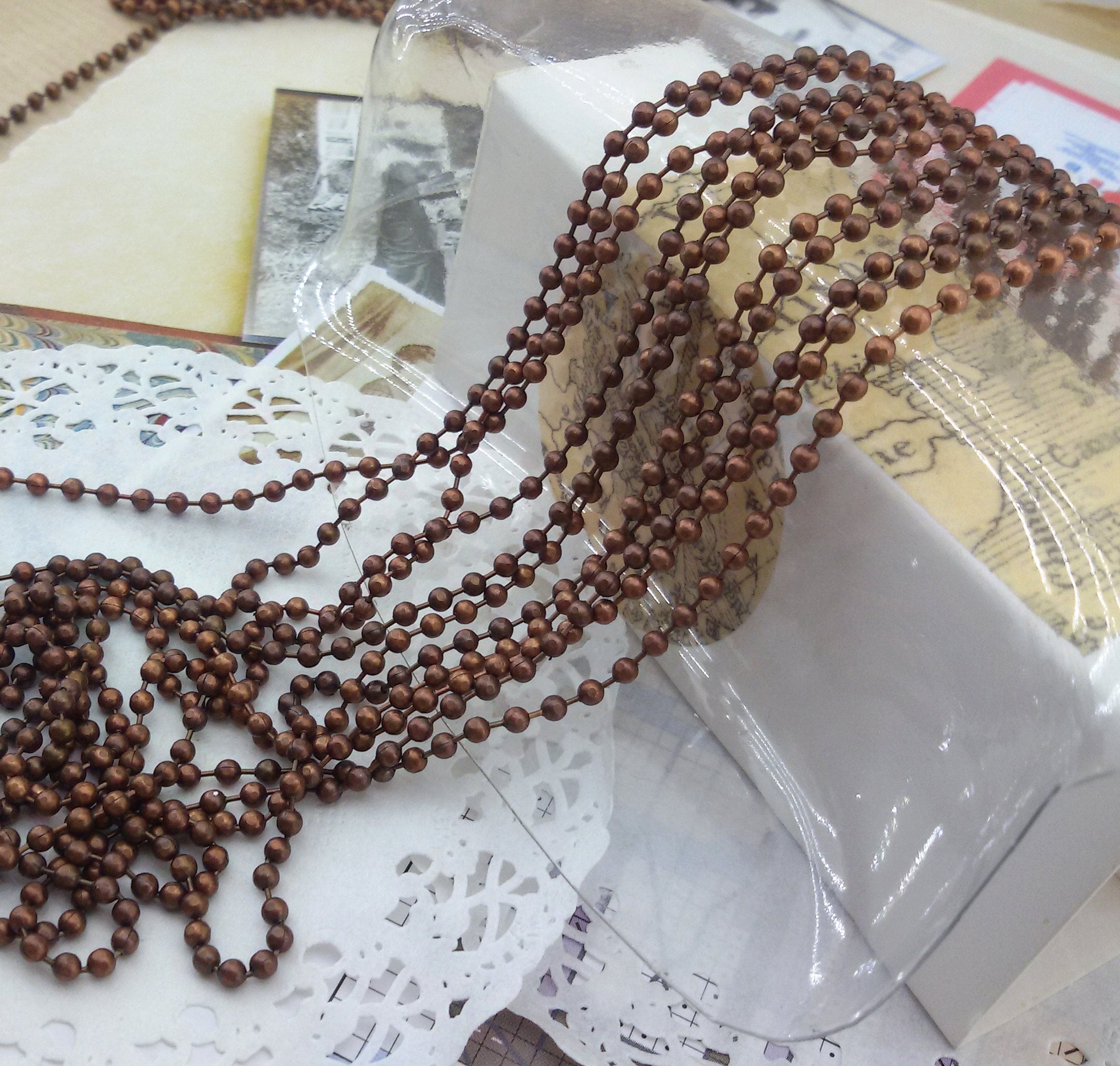 100 cm ( 39.37 in) antique copper tone ball chain,slightly faceted balls 2.3 mm ball