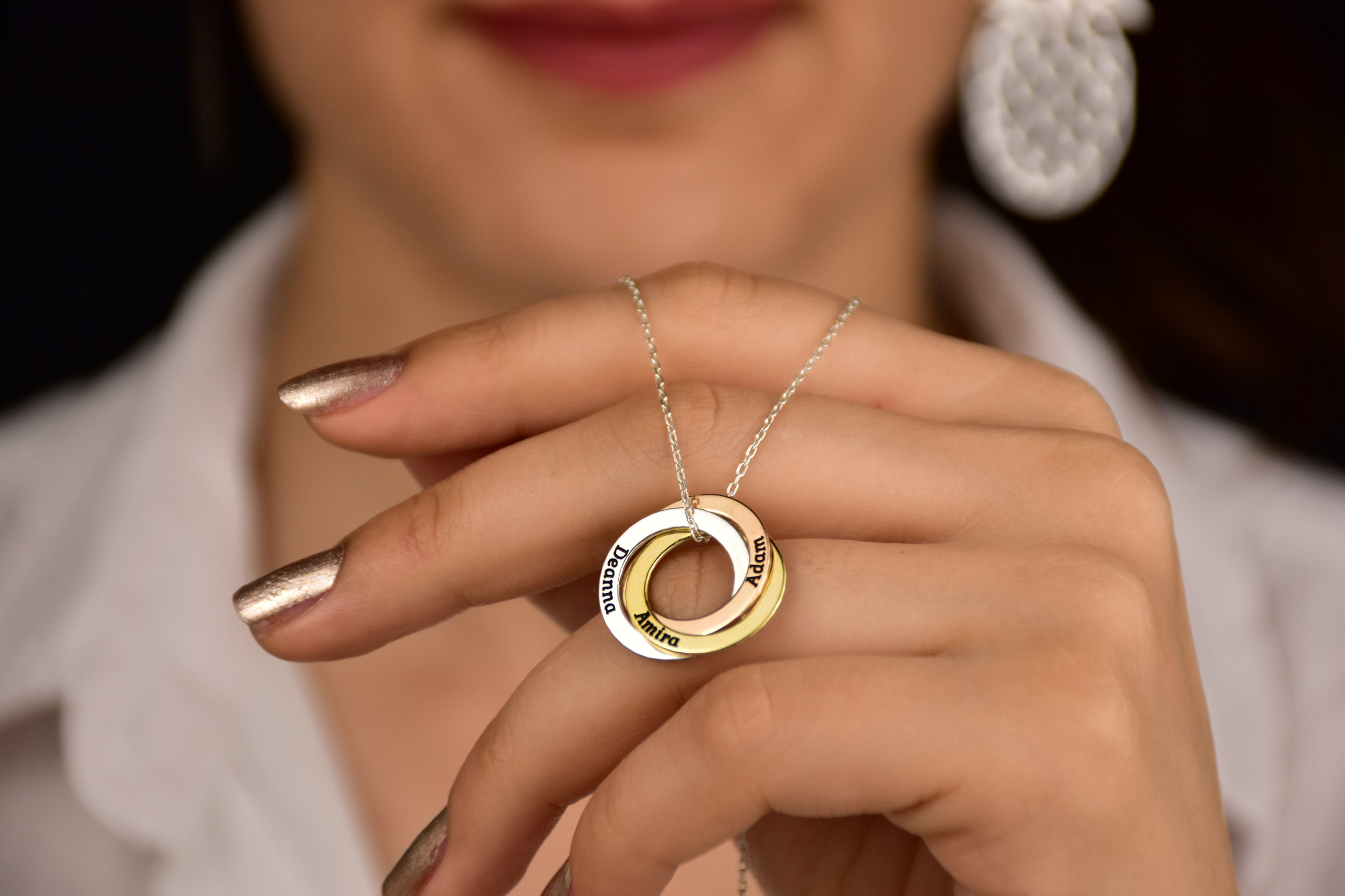 Ring necklace,Mom necklace,Personalised - interlocking circles key ...