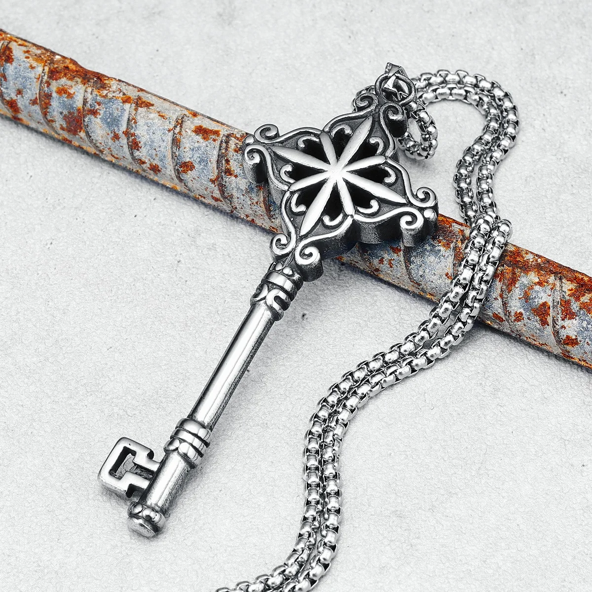 Vintage Key Men Necklace Creative Keys 316L Stainless Steel Pendant...