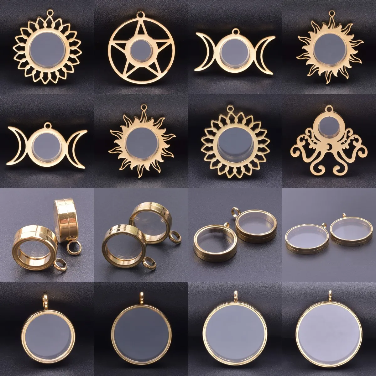 New Floating Charms Round/Flower/Pentagram/Sun/Moon/Octopus Relicario Photo Locket Pendant For Neckl...