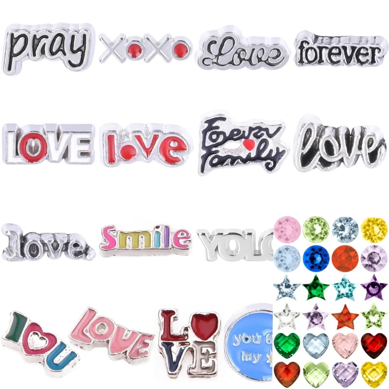 20Pcs/Lot Mini Sweet Heart Word Pray Letter I Love You Forever Floating Charms Handmade Fit Glass Lo...