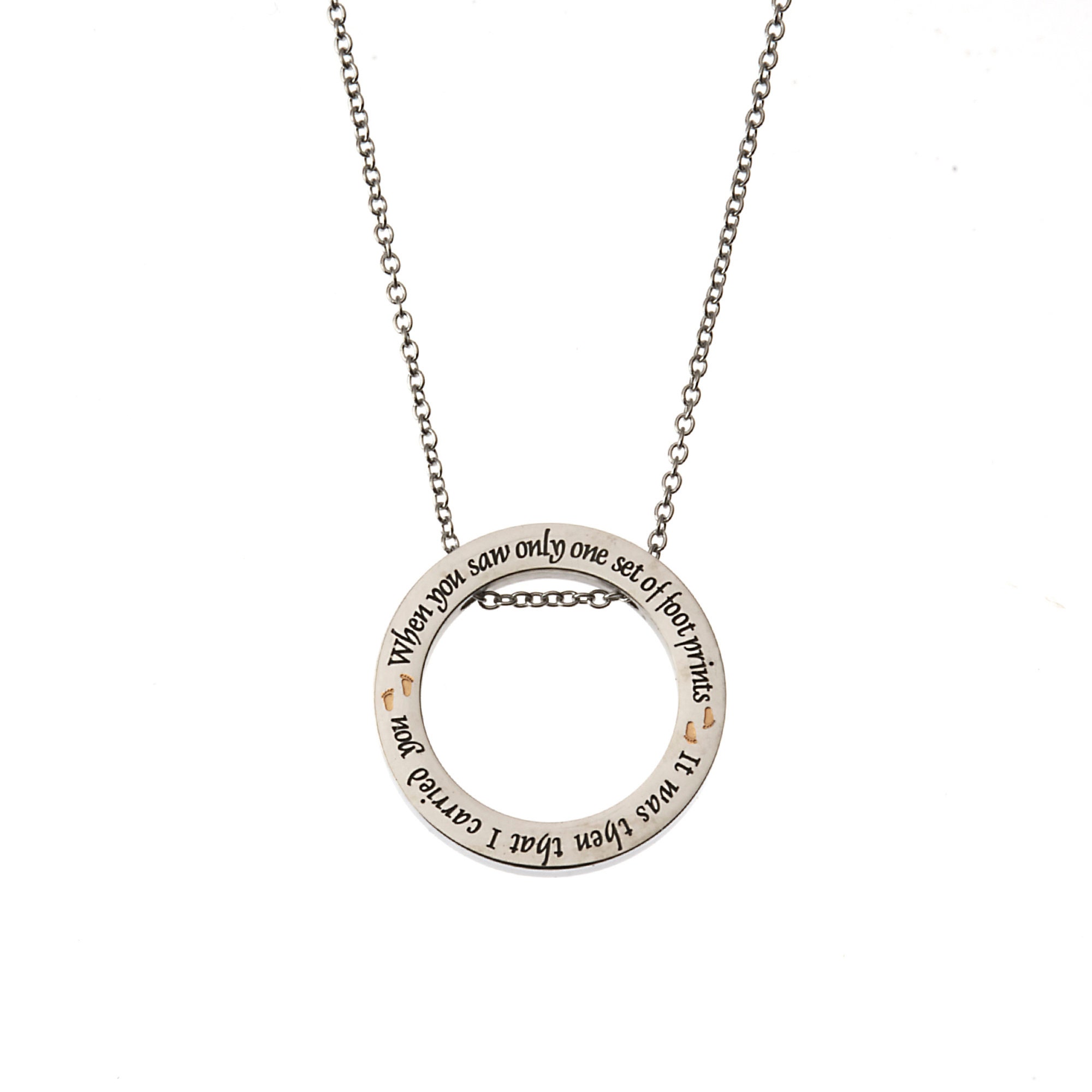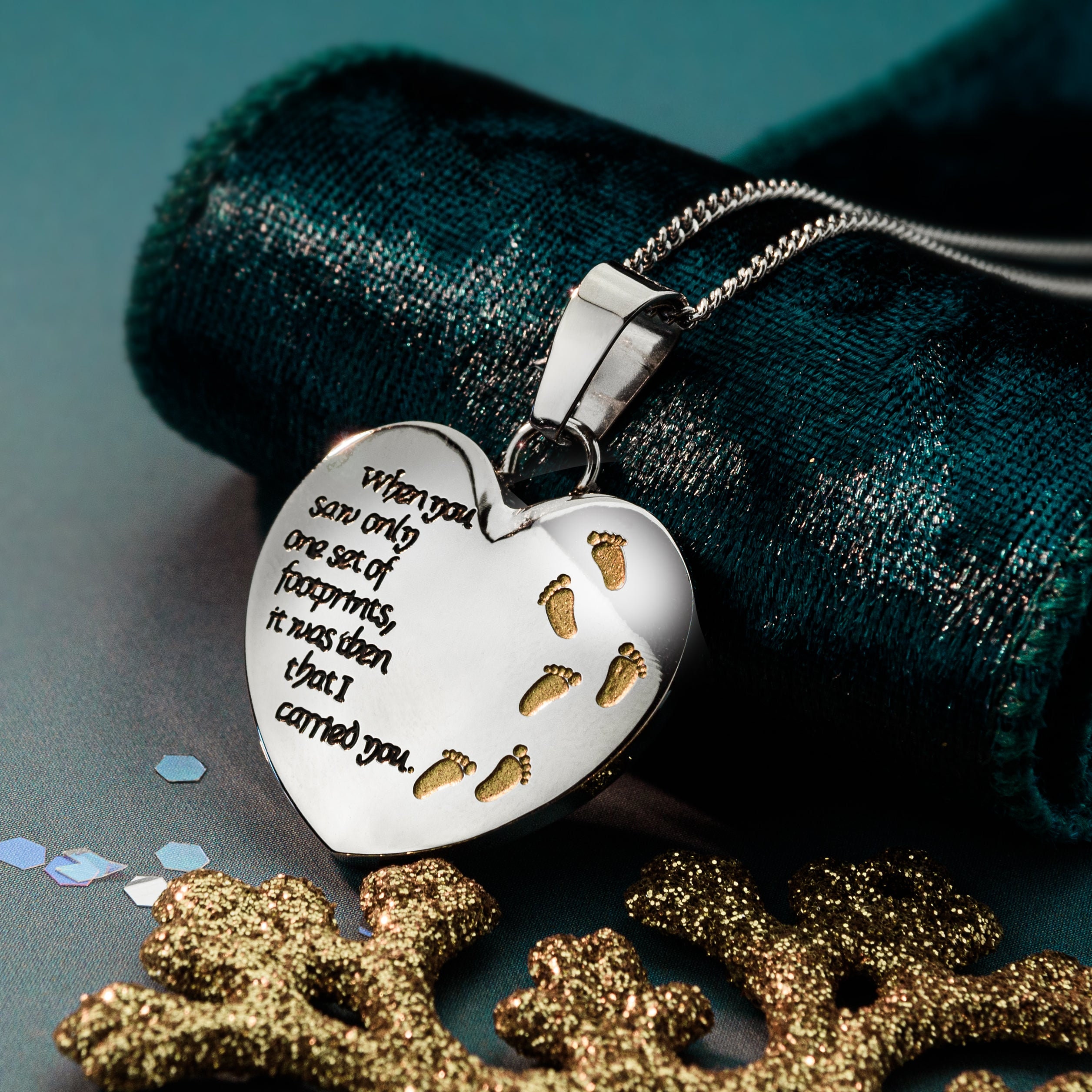 "Carry an inspiring message of faith close to your heart with this beautiful Footprints in the ...