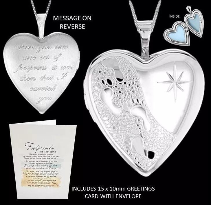 Footprints In The Sand Necklace, Photo Locket, Quote Jewelry, Inspi...