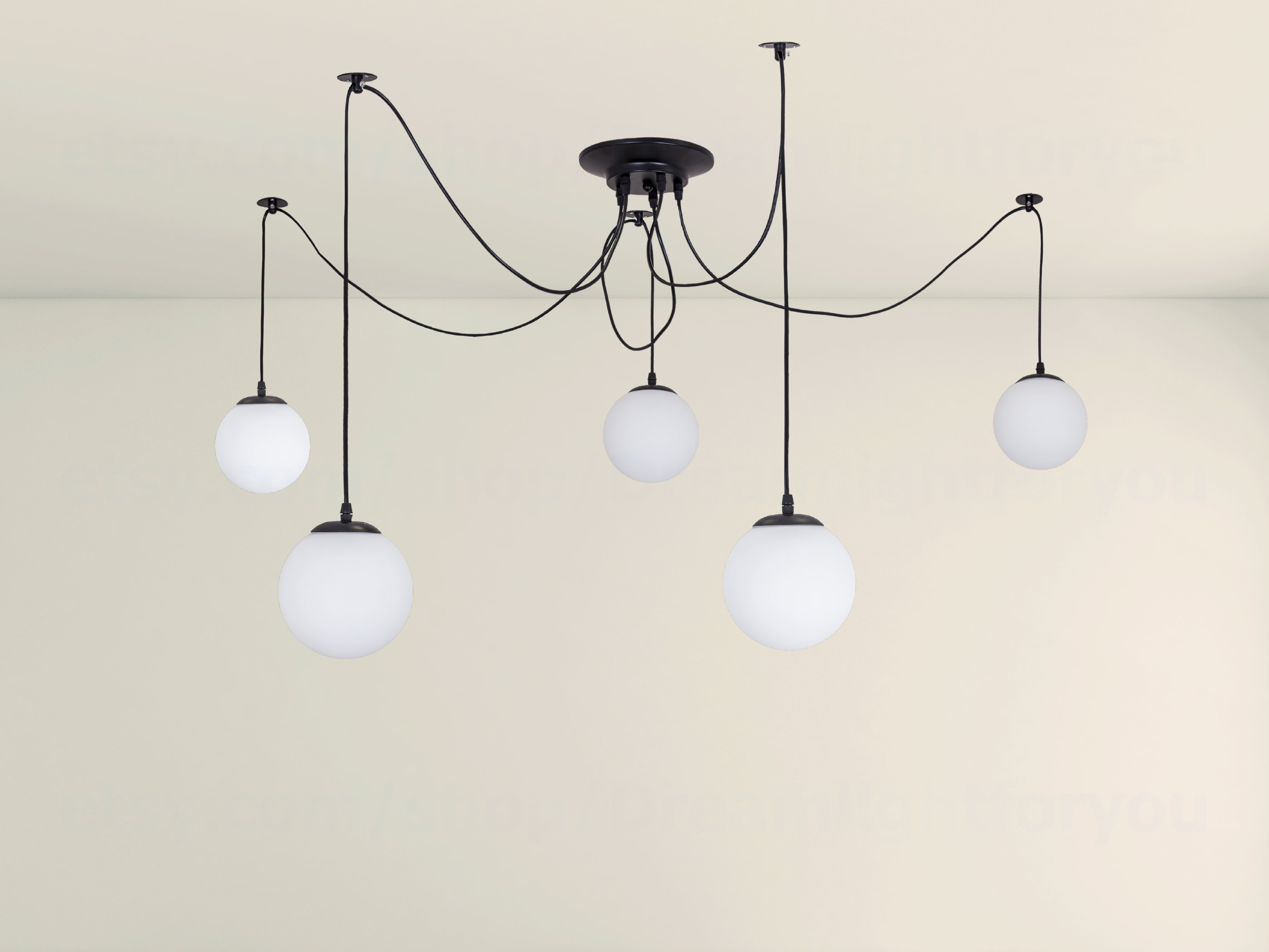 Spider lights 5 Globe Spider chandelier Globe Pendant light Frosted...