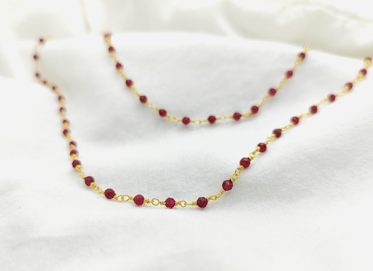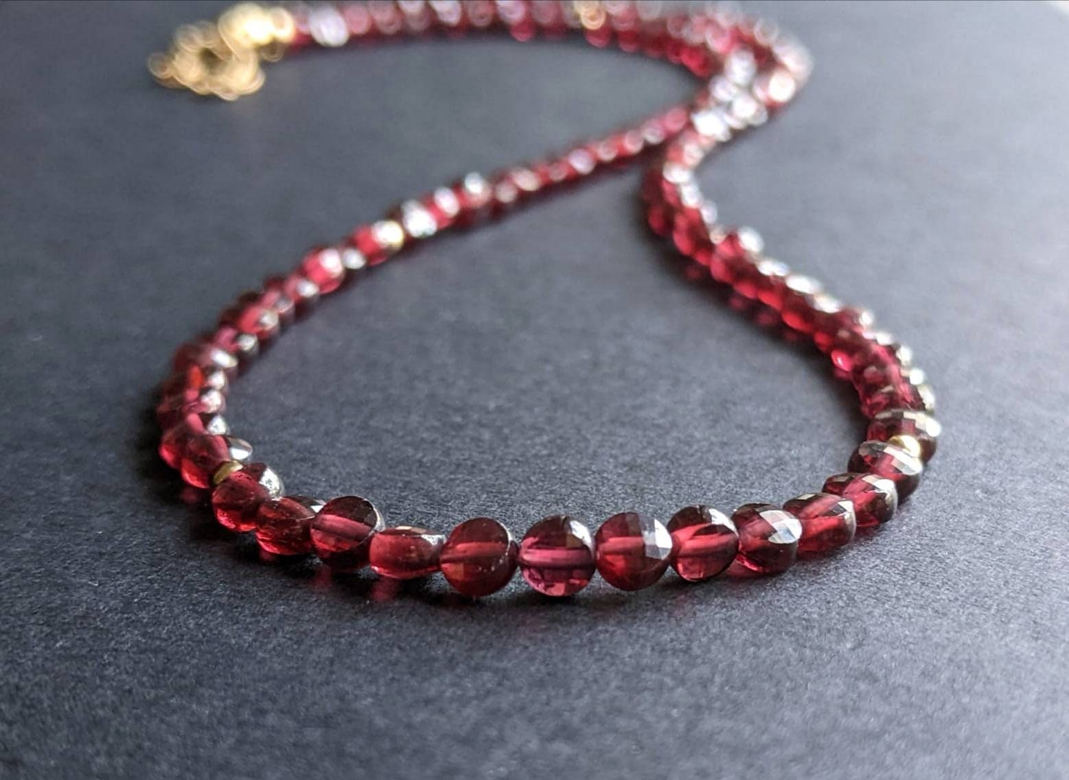Gold Garnet Necklace, Pyrope Garnet Necklace, 14K Garnet Beaded Nec...