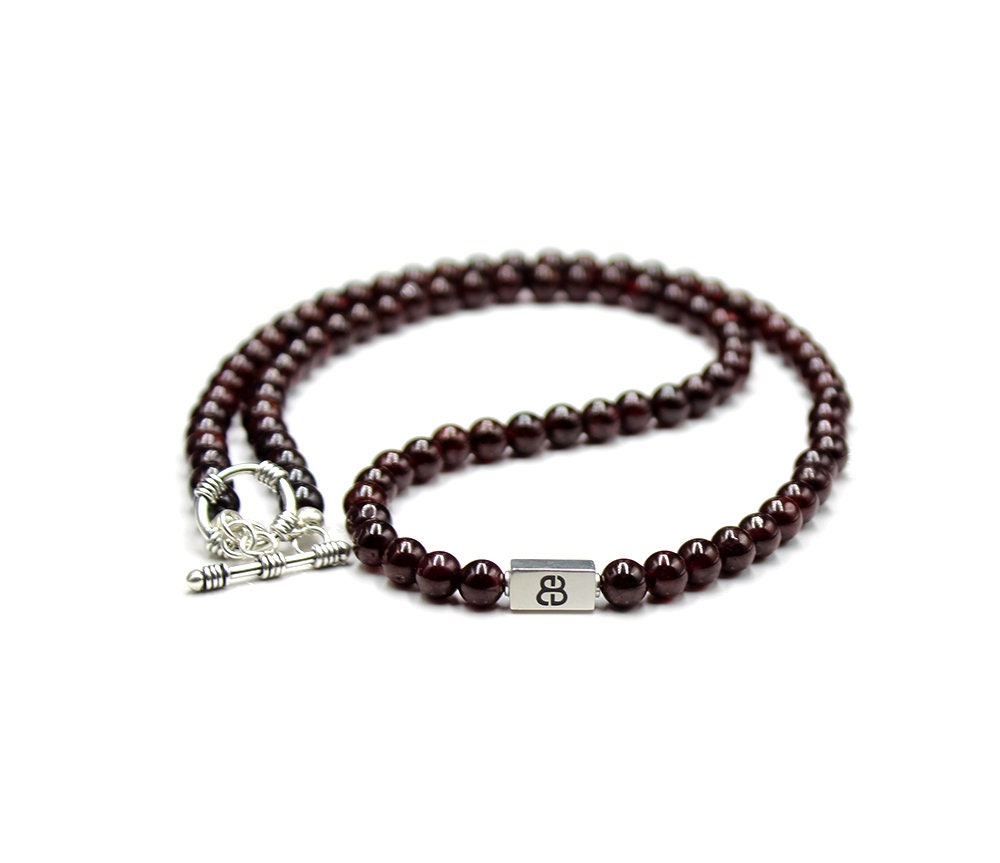 Men's Necklace, Garnet Stone and Sterling Silver Necklace, Men's Be...