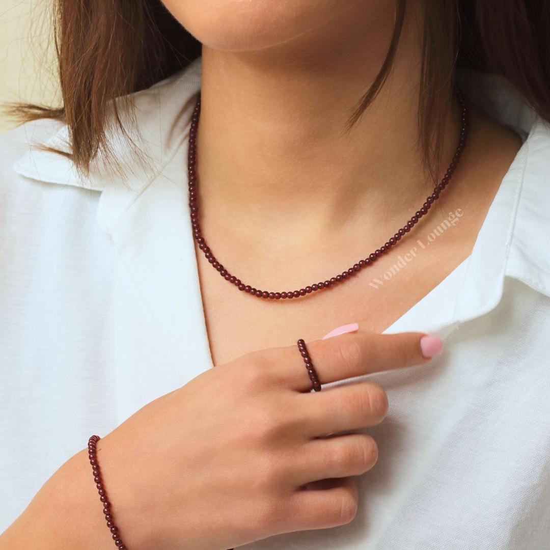 Natural GARNET Necklace, Garnet Jewelry, Garnet Beads Necklace, 4mm...