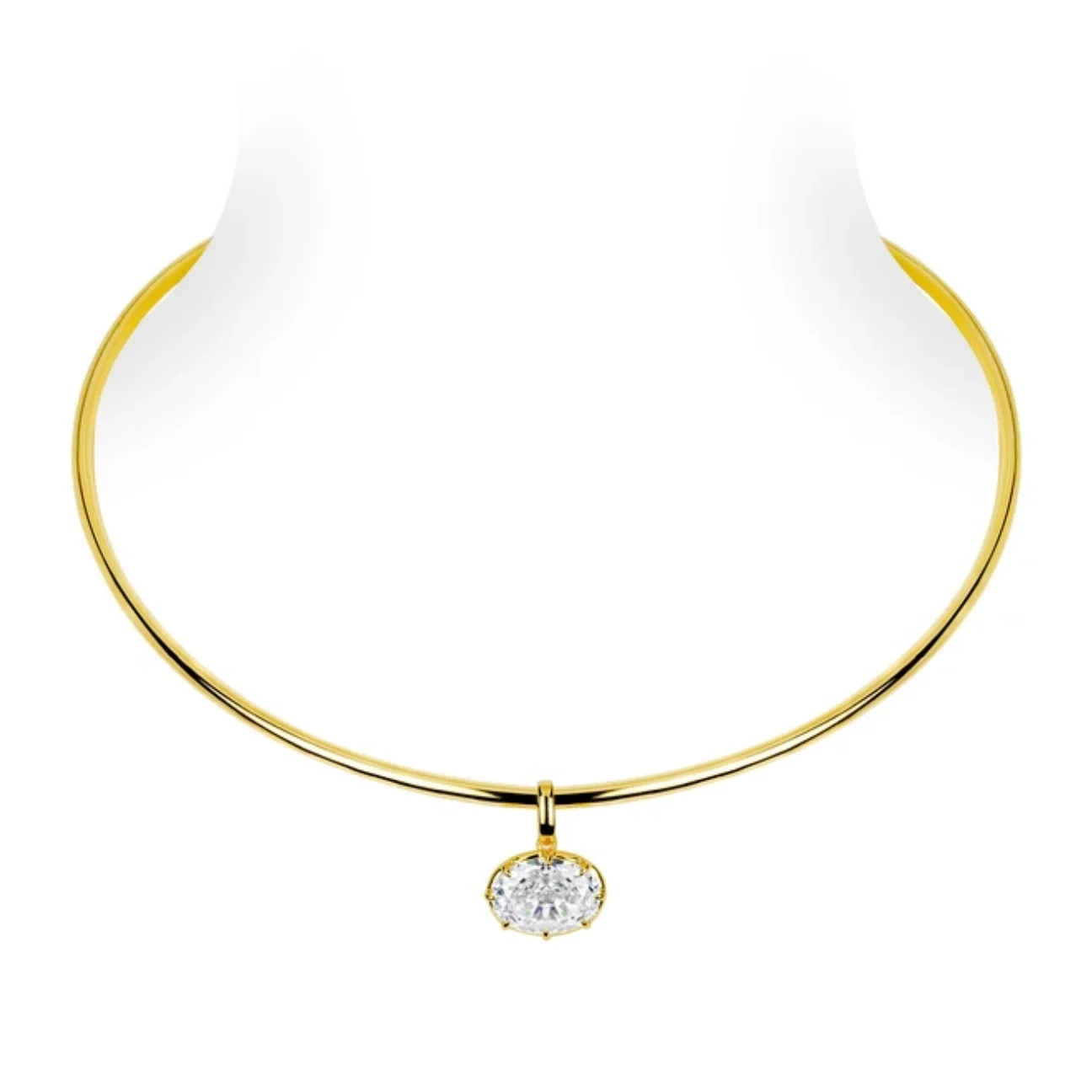 Bellux Pendant 925 Silver Plated 18k Gold Synthetic Zircon Gold Necklace White Diamond Pigeon Egg Ch...