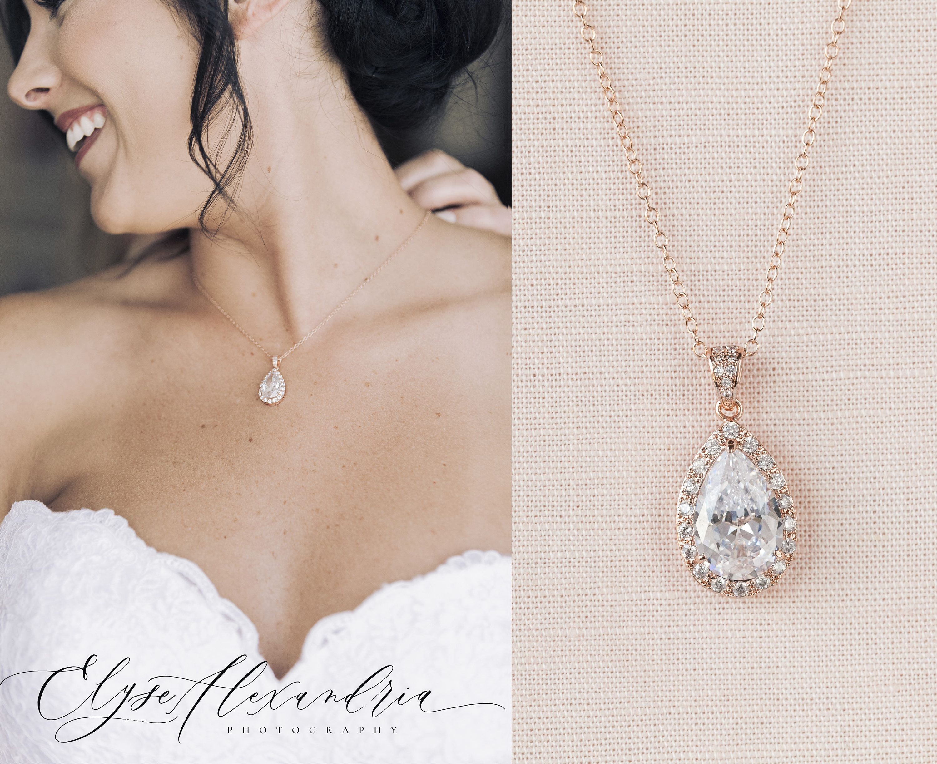 Crystal Bridal Necklace, Teardrop Pendant Necklace, CZ Wedding Neck...