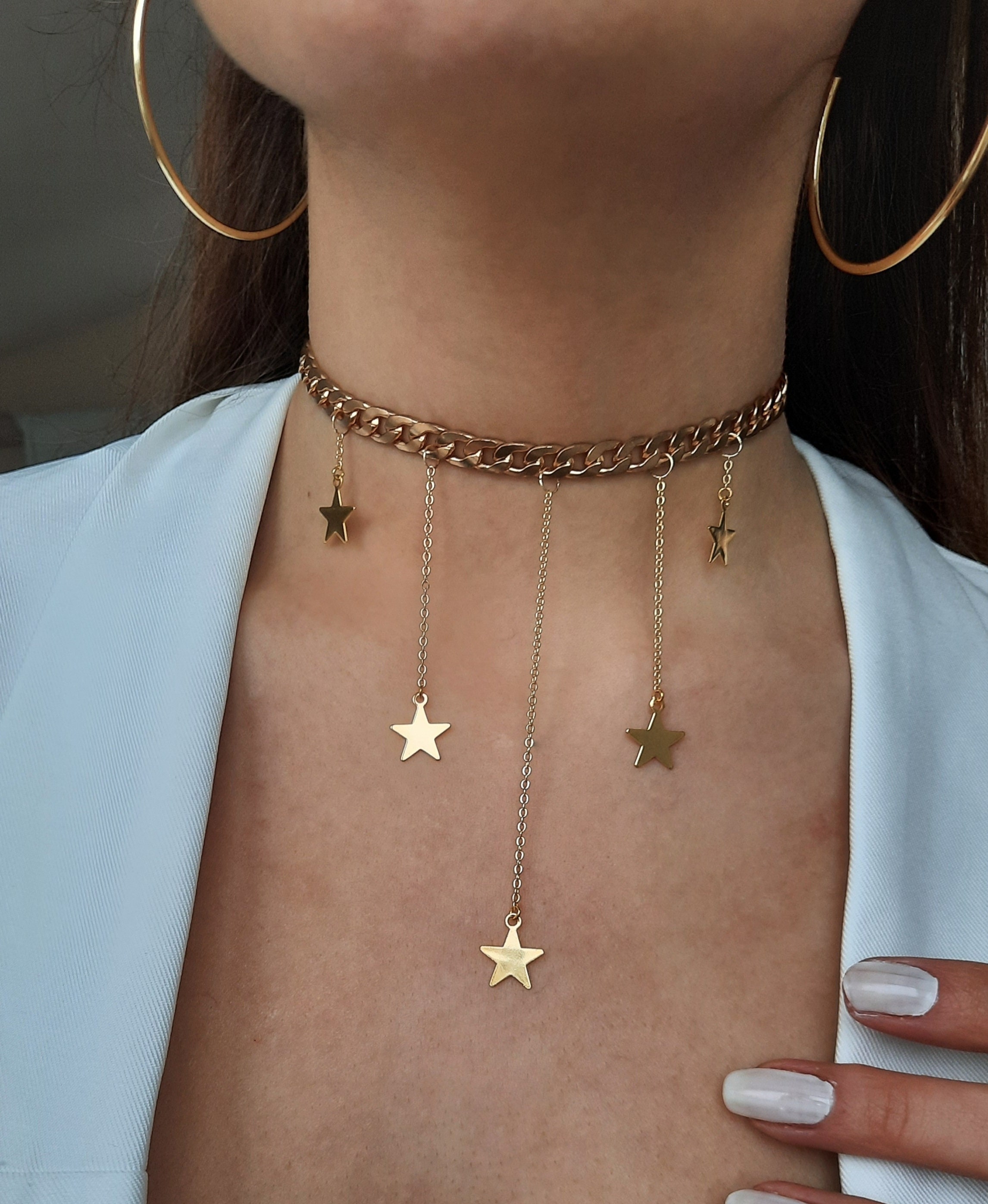Gold Choker star Necklace, Chokers, tassel choker necklace , Choker...